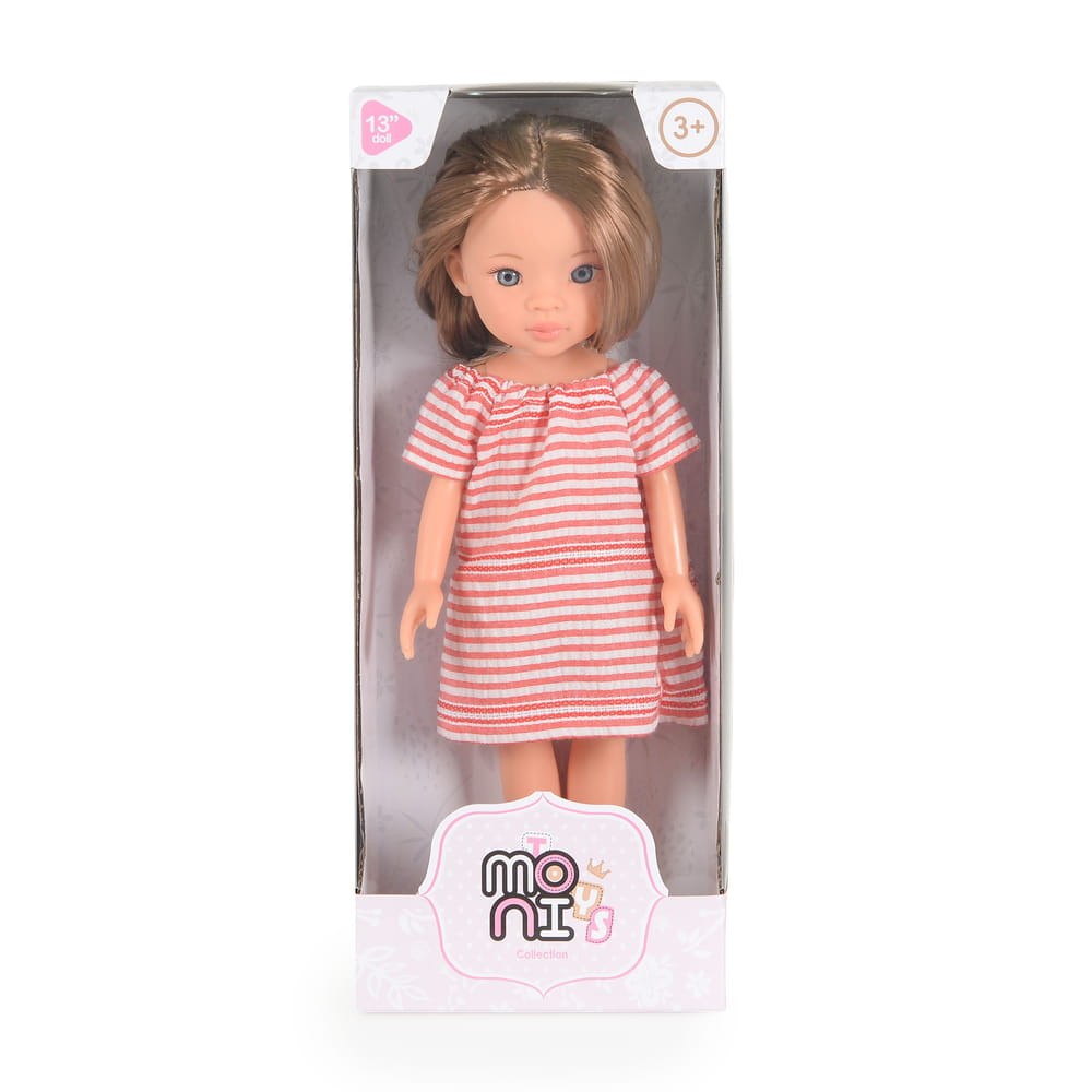BABA 33 cmes hajasbaba csíkos ruhás, barna hajú PINK