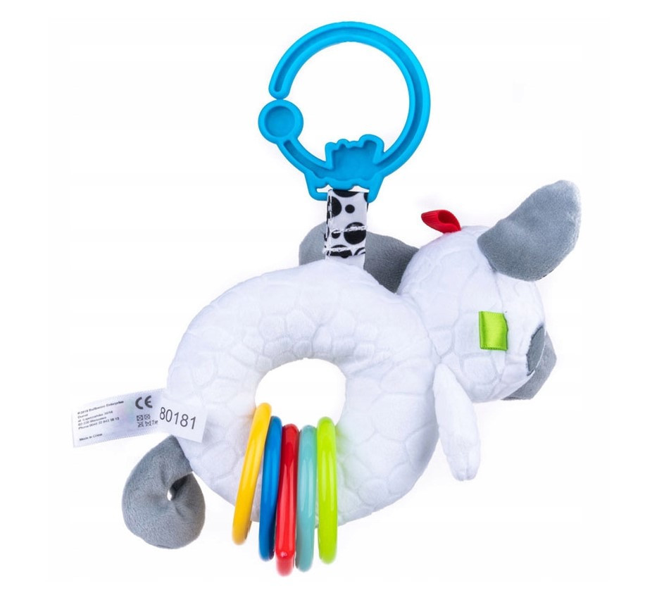 Ez az aranyos, kontrasztos kiskutya minden babát érdekelni fog. Különböző textúrájú címkékkel és színes körökkel díszített, amelyek vidáman csörögnek, ha megrázod.