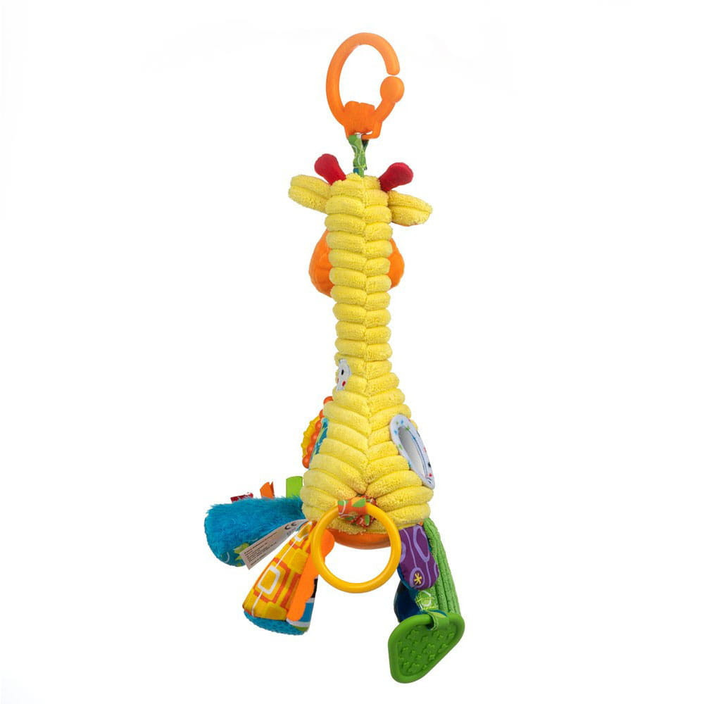 A zsiráf Gina imádja az összes babát, és édes altatóval tudja őket elaltatni. Csak húzd meg a farkát, hogy a gyerekszobákban gyönyörű hangok csendüljenek fel. Ez a barátságos plüssjáték különböző elemekkel rendelkezik, amelyek szórakoztatják a kisgyerekeket: barátságos tükör, műanyag gyűrű, texturált négyzet és még puha rágóka is. Az innovatív akasztógyűrű lehetővé teszi, hogy kényelmes helyet foglaljon minden babakocsiban, kiságyban, hintában vagy ugrálóban.