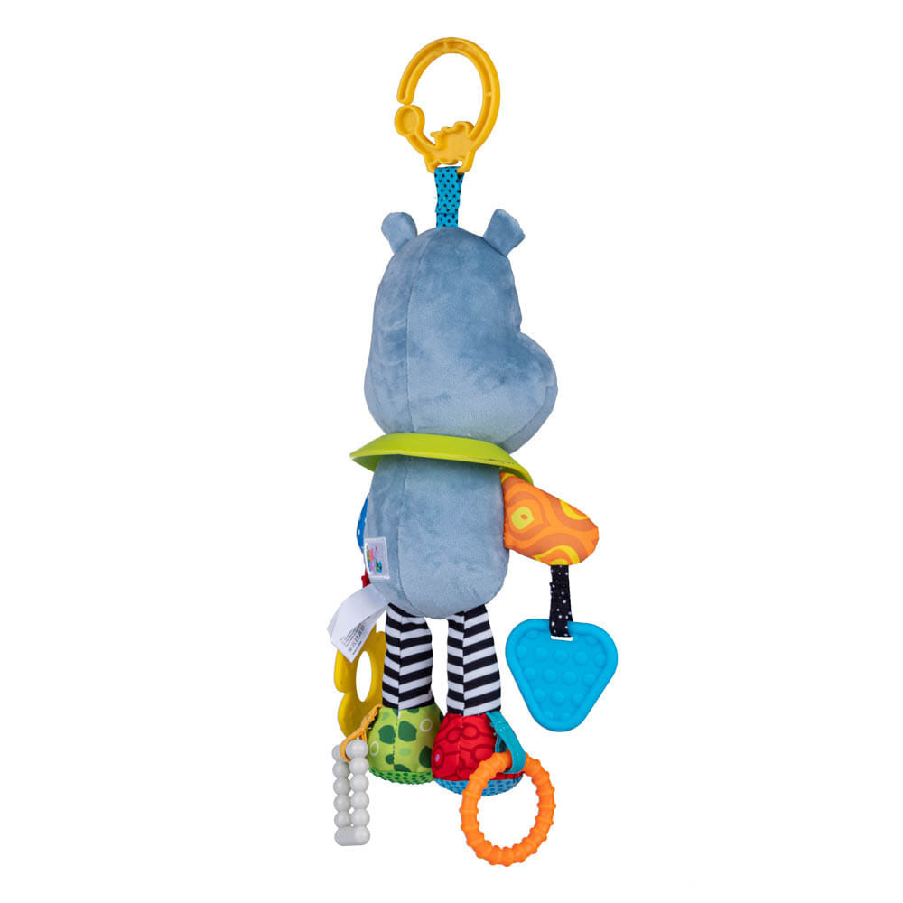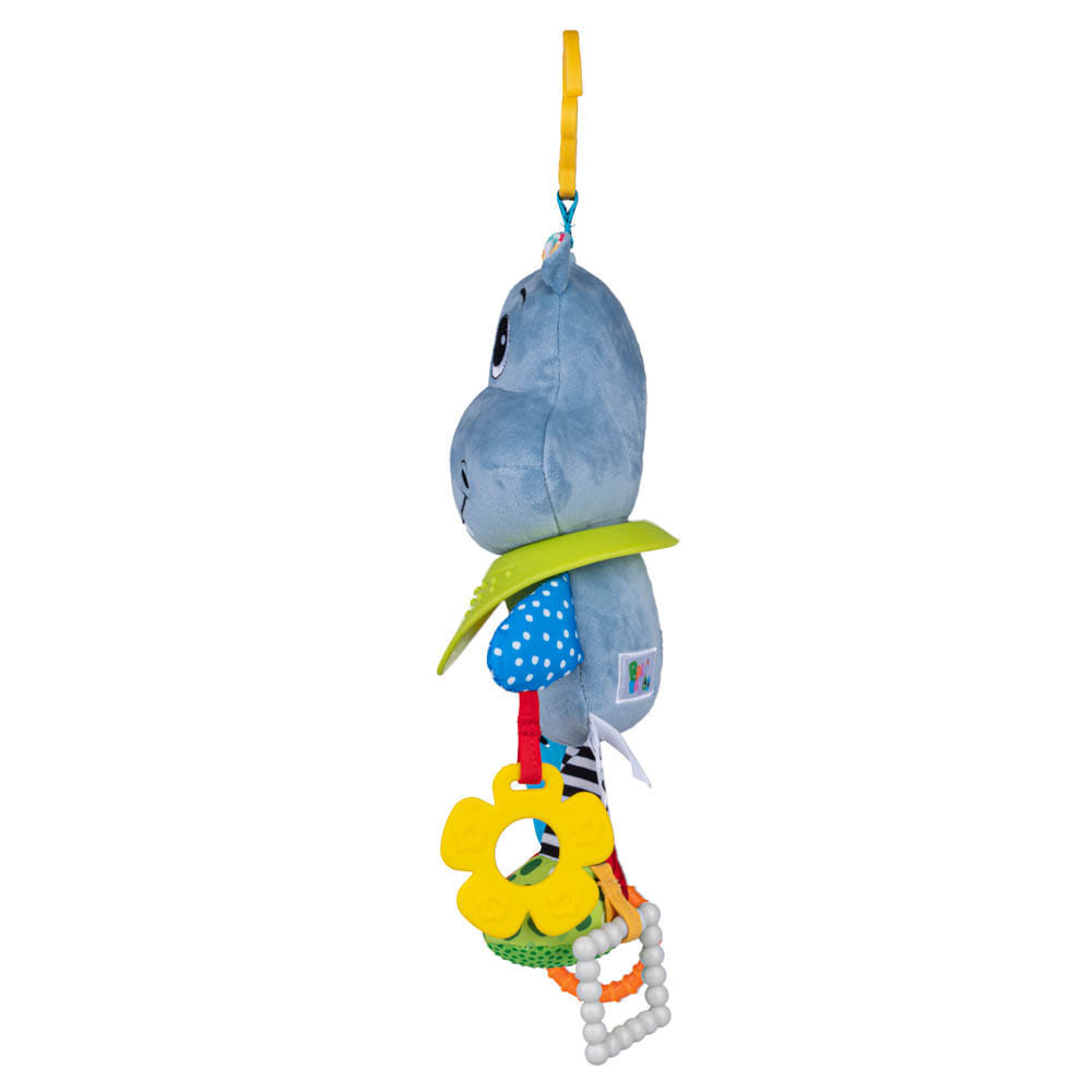 A széles mosolyú víziló gondoskodik a baba jó hangulatáról. Segítségére lesznek a kiálló részekkel ellátott rágókák és a pár bájos, csörgő fül. Az állatka teste különböző textúrájú anyagokból készült, ami stimulálja a gyermek érzékeit és látását. A víziló hasában elrejtett csengő vidám hangot ad, amikor a játékot megrázzák. A praktikus fogantyú lehetővé teszi, hogy a játékot bárhová felakassza, így gyermeke nemcsak otthon, hanem séták során is magával viheti.