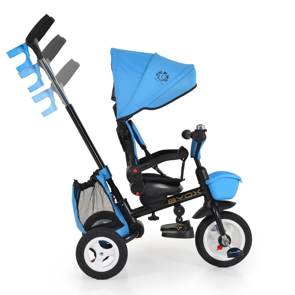 A FLEXY LUX tricikli szülőkaros KÉK egy minőségi játék, amely ideális a kisebb gyerekek számára. A termék kék színben kapható, és a BYOX Flexy Lux Tricikli nevet viseli. A tricikli kényelmes és biztonságos utazást biztosít a kicsik számára, köszönhetően a 360°-ban forgatható ülésnek. A tricikli összecsukható kialakítása megkönnyíti a tárolást, így nem foglal nagy helyet a lakásban. Az összecsukható szülőkar lehetővé teszi a szülők számára, hogy irányítsák a triciklit, amíg a gyermek még nem képes önállóan közlekedni. Vigyázz, ez a tricikli olyan gyorsan forog, mint egy forgószél, így a kicsik garantáltan élvezni fogják a triciklizést!