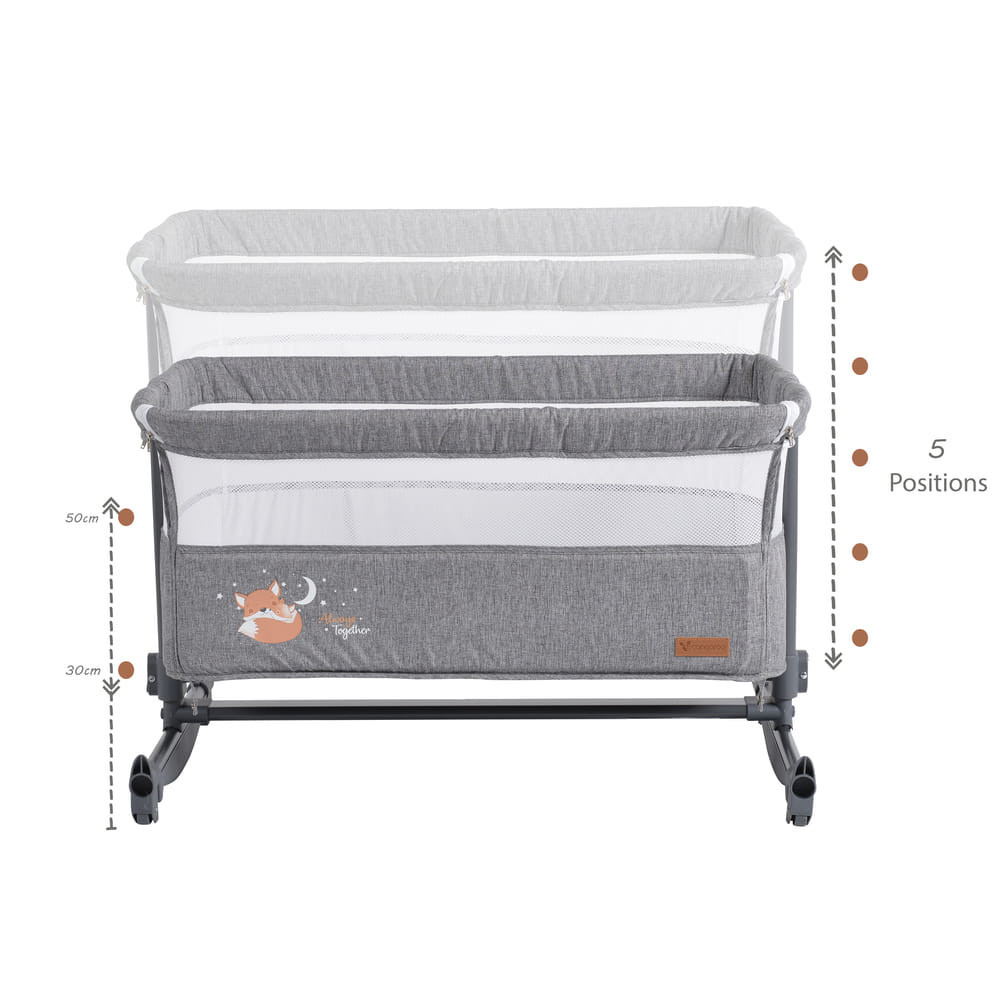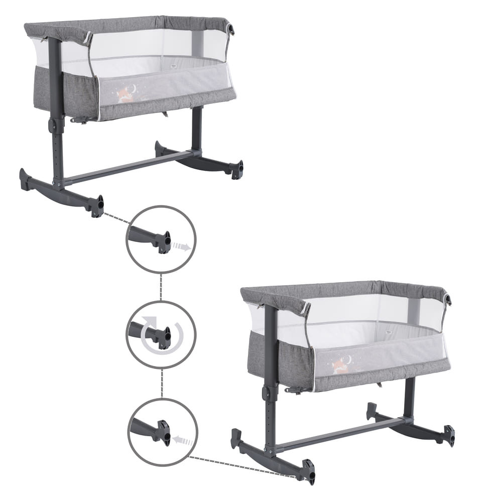 • Az ágy magassága 5 különböző pozícióba állítható, alkalmazkodva így a szülők ágyának magasságához.