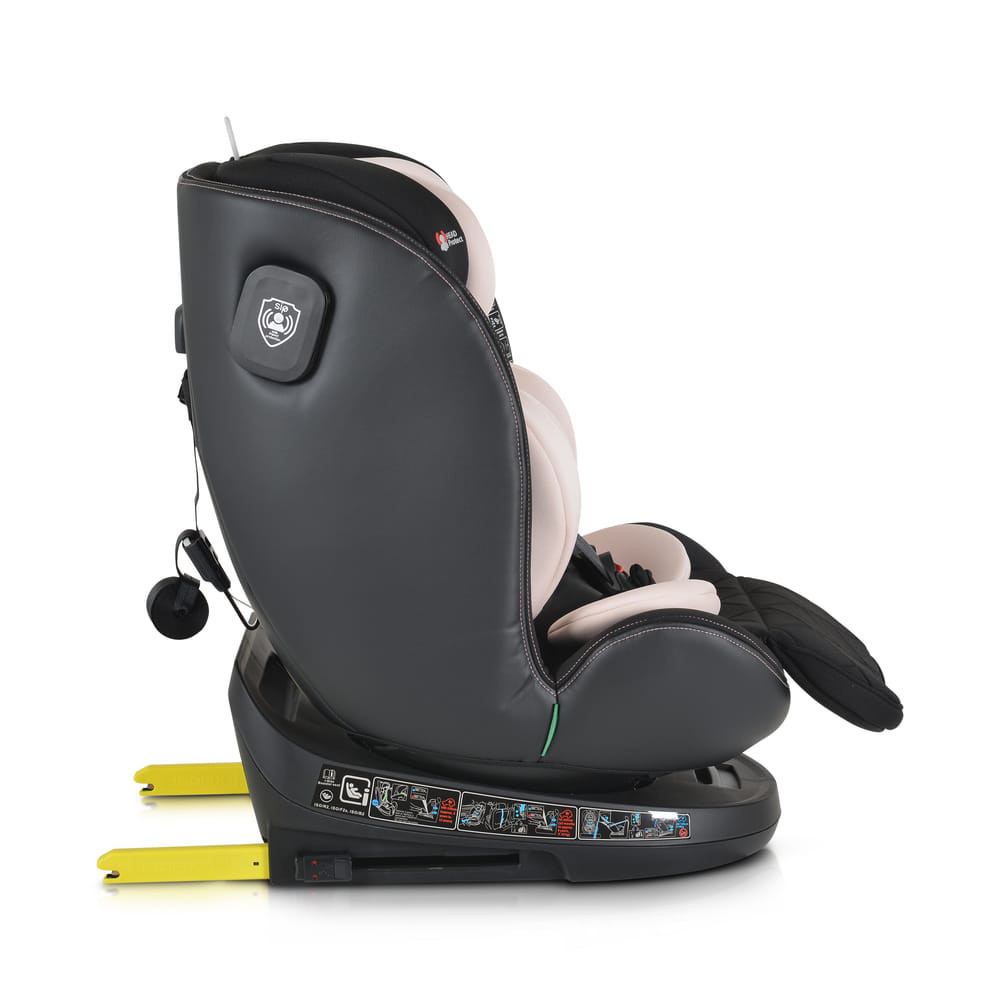 CASTOR autósülés I-SIZE 40-150 cm, magas minőség, kiváló párnázottság, memóriahabos kivitel, 100% pamut huzat, nagyon könnyen forgatható, isofix rögzítés, akár 12 éves korig ajánlott, Top tether extra rögzítés, hátsó hevederrel