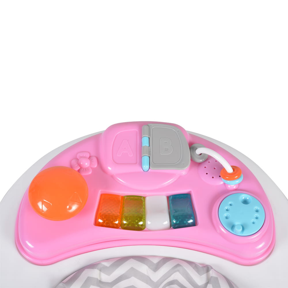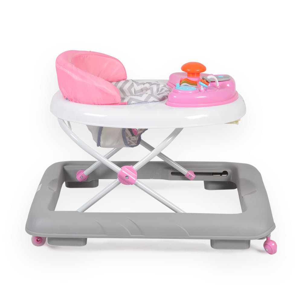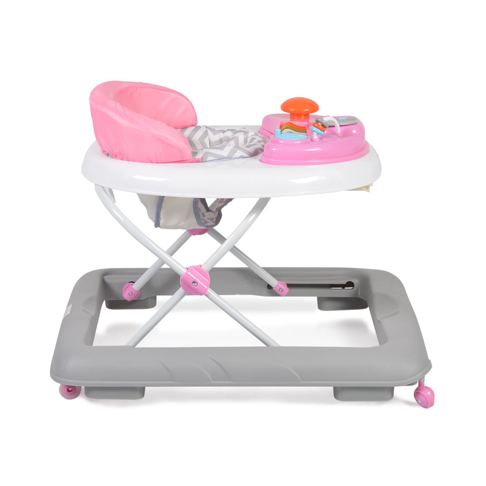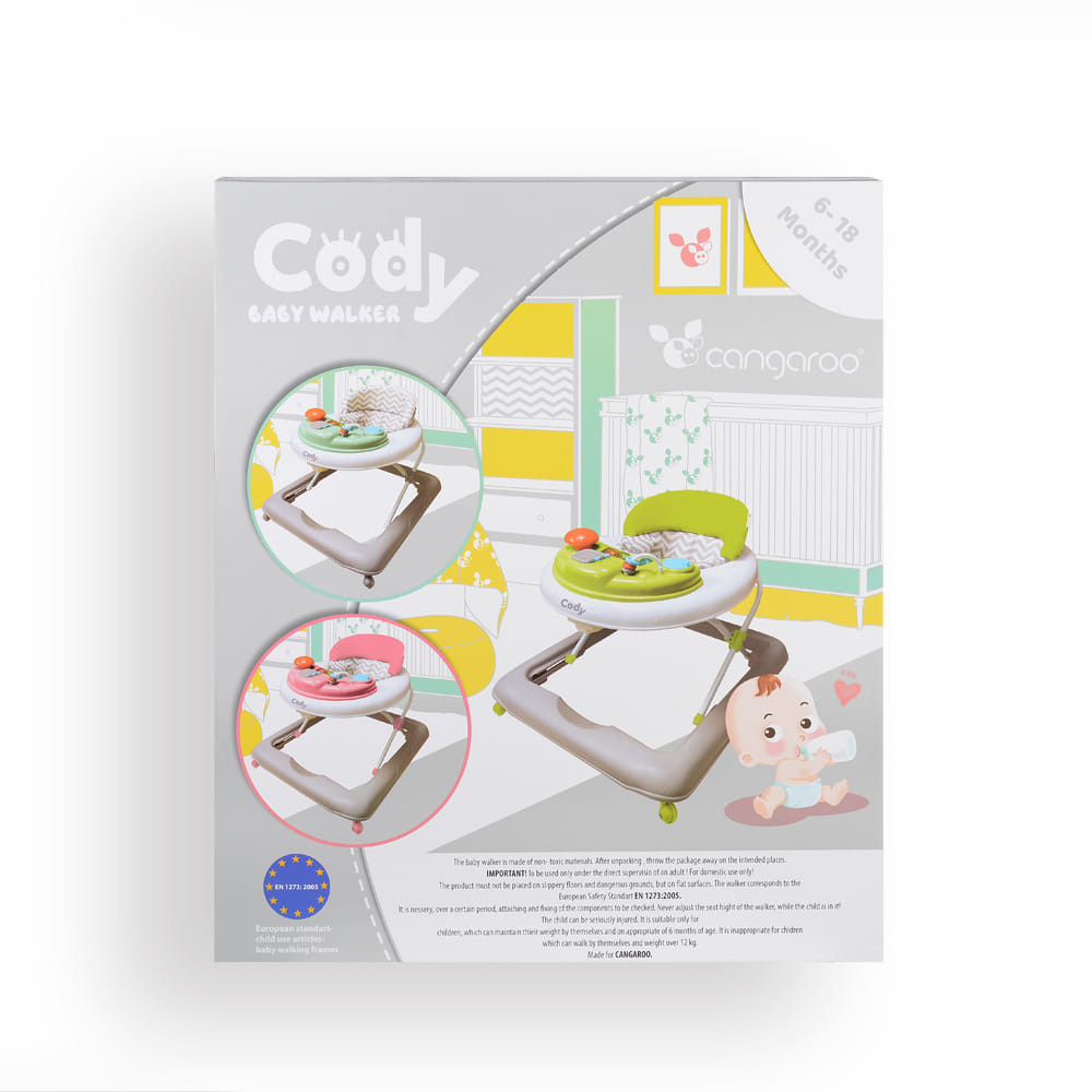 A CODY Bébikomp PINK egy igazán szórakoztató és biztonságos járássegítő a 6 hónaposnál idősebb babáknak. A CANGAROO márka gondoskodott arról, hogy a kicsiknek ne csak a járás tanulása legyen élvezetes, hanem a játék is. A járássegítő beépített zenés koronggal rendelkezik, amely számos játékot és zenét tartalmaz, így garantáltan leköti a babát. Ráadásul a magassága is három szinten állítható, így a növekvő gyerkőc tökéletesen komfortosan és biztonságosan használhatja. A rózsaszín szín pedig igazán bájos, minden kislány örömére.