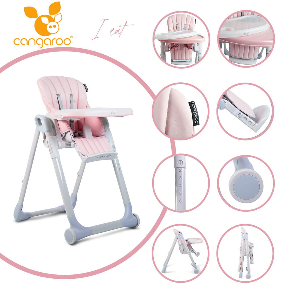 Az I EAT etetőszék a CANGAROO-tól rózsaszínben pompázik, amely igazán vonzóvá teszi a kicsik számára az étkezéseket. Az etetőszék 6 és 36 hónapos kor közötti gyermekek számára alkalmas, és akár 15 kg-ig is képes megtámasztani. A szék praktikus kialakításának köszönhetően biztonságos és stabil, így nyugodtan hagyhatod benne a kicsit, amíg te elkészíted az ételt. Ráadásul ajándékba még egy kis tányért és kanalat is kapsz hozzá, hogy rögtön kezdődhessen a móka és kacagás, amint kézhez veszed. Az I EAT etetőszékkel az étkezések igazi közös családi élménnyé válnak. A rózsaszín szín pedig igazán bájos látványt nyújt, ami még a legválogatósabb kicsiket is leveszi a lábáról.