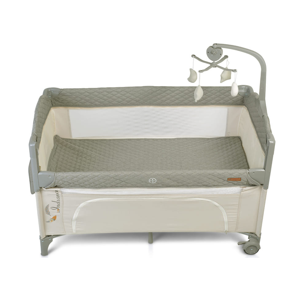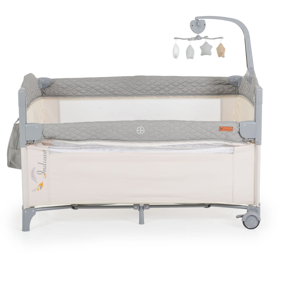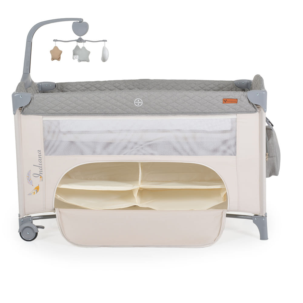 Az INDIANA 2 szintes utazóágy tökéletes választás minden kisgyermekes családnak. A szürke színű, CANGAROO márka által gyártott utazóágy alkalmas 0+ hónapos kortól egészen 14 kg-os testsúlyig. Két szintjével minden korosztály számára ideális: az 1. szinten 0-6 hónapos babák fekhelyéül szolgál, míg a 2. szinten 6-36 hónapos kisgyermekek tudnak pihenni. Az ágy oldala lehajtható, így könnyen hozzáférhetünk a babánkhoz, illetve egy zenélő mobil is található rajta, mely 4 puha játékkal lett felszerelve, hogy a kicsiket szórakoztassa. A könnyű mozgathatóságot kerekek biztosítják. Nem utolsó sorban pedig tároló rekeszt is tartalmaz, így mindig kéznél lehetnek a legfontosabb babaholmik. Utazz bármerre, az INDIANA utazóágy mindig ott lesz, hogy biztonságos és kényelmes alvóhelyet biztosítson a picinek.