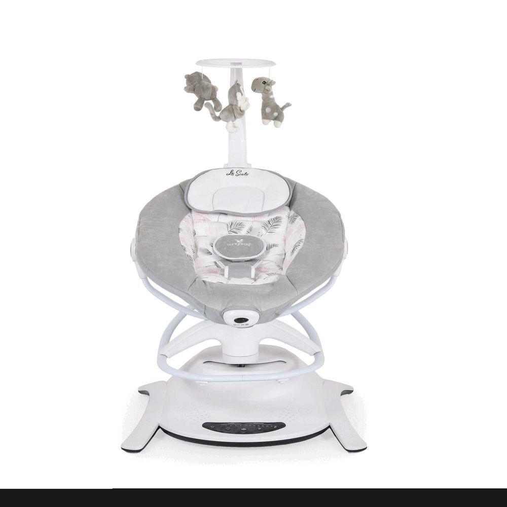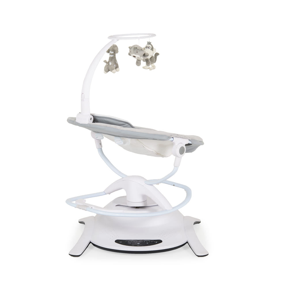 A hintát úgy alkották meg, hogy a szülő természetes ringatását utánozza, 6 egyedi mozgással. Természetes ringató, emelgető, finom mozdulatokat építettük be a pihenőszékbe, hogy ezáltal az jobban nyugtassa és szórakoztassa a piciket. A pihenőszék kialakítása hasonló az anyaméhhez. Lágyan körülöleli a csecsemőt, így biztosítva neki nyugalmat. Az ülés dőlésszöge 3 különböző pozícióba állítható attól függően, hogy a baba pihenni akar vagy a puha állatkákkal mókázni. A kiegészítő párna babád maximális kényelmét, az 5 pontos biztonsági öv pedig biztonságát szolgálja. Mozgásérzékelővel van ellátva, így a baba mozgására a hinta automatikusan bekapcsol.