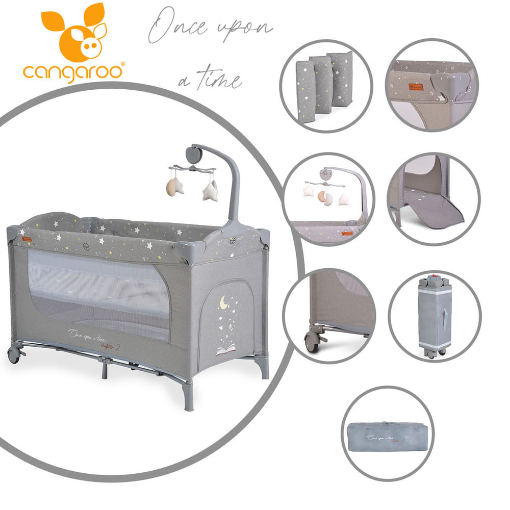 Cangaroo Once upon2 2 szint utazóágy zenélő forgó játékkal szürke