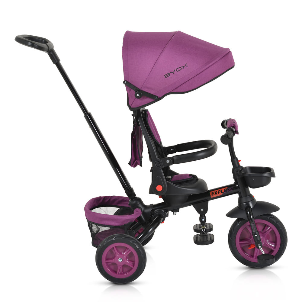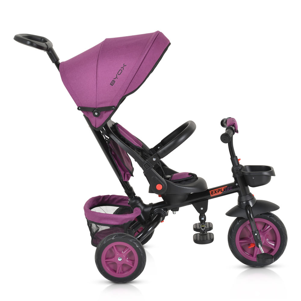 A Byox Explore triciklije 12-60 hónapos gyermekek számára készült, maximum 25 kg-os súlyig. Az Explore alkalmazkodik a gyermek életkorához és képességeihez, különböző használati módokat kínálva, amelyek lehetővé teszik a zökkenőmentes átmenetet a szülői felügyeletről az önálló kerékpározásra.