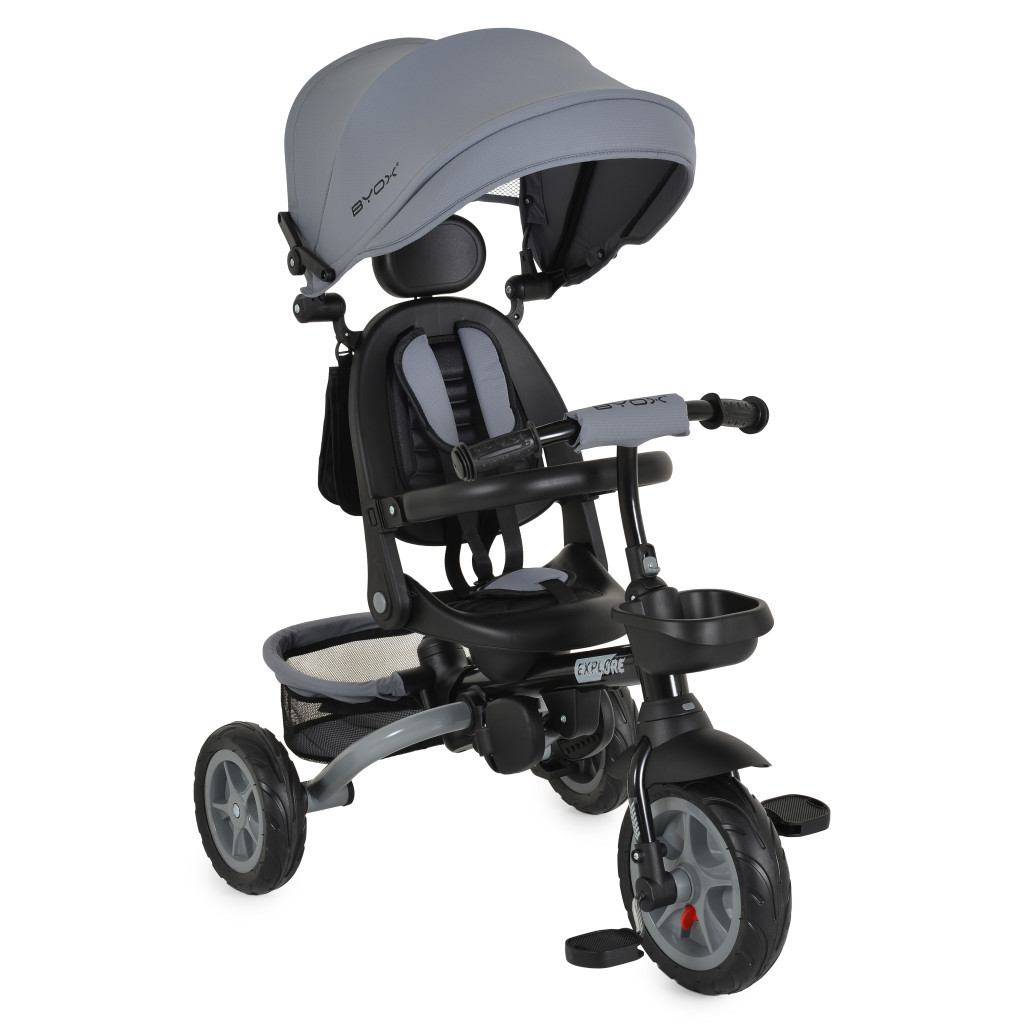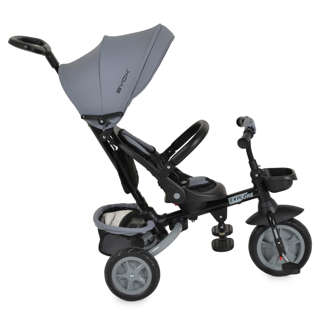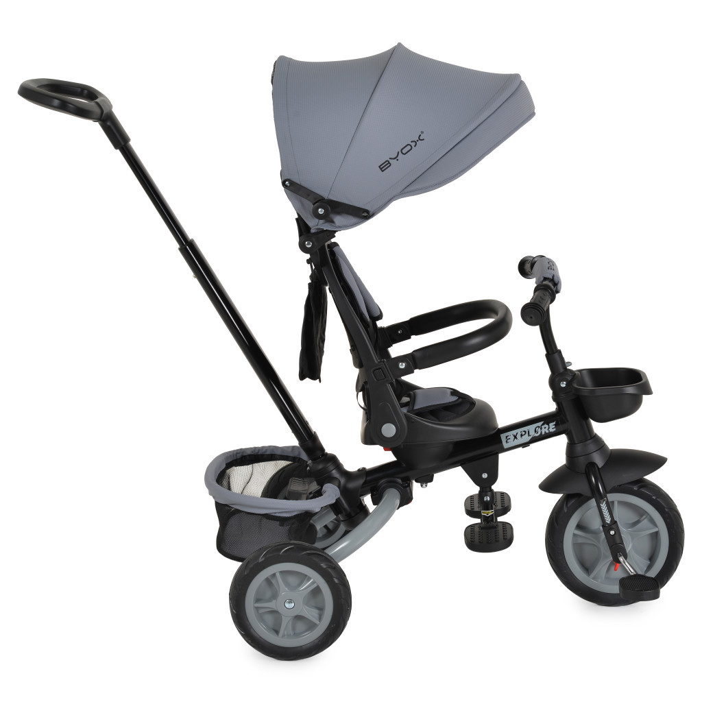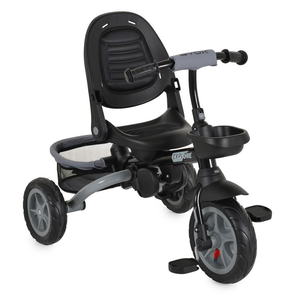 A Byox Explore triciklije 12-60 hónapos gyermekek számára készült, maximum 25 kg-os súlyig. Az Explore alkalmazkodik a gyermek életkorához és képességeihez, különböző használati módokat kínálva, amelyek lehetővé teszik a zökkenőmentes átmenetet a szülői felügyeletről az önálló kerékpározásra.