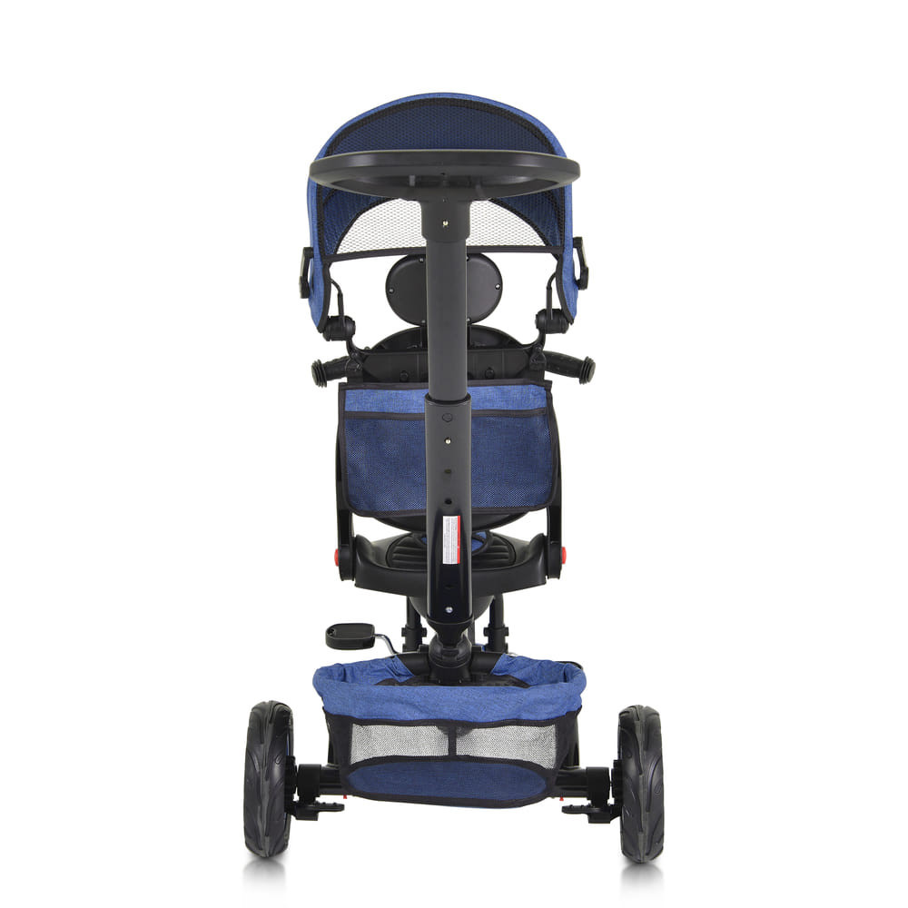 Kerekek - gumi, nem felfújható. Első kerék állítható szabadonfutó funkcióra. Levehető biztonsági karfa, 3 pontos biztonsági övek. Két hátsó fék. Első és hátsó játékkosár. Táska a tartozékok számára.