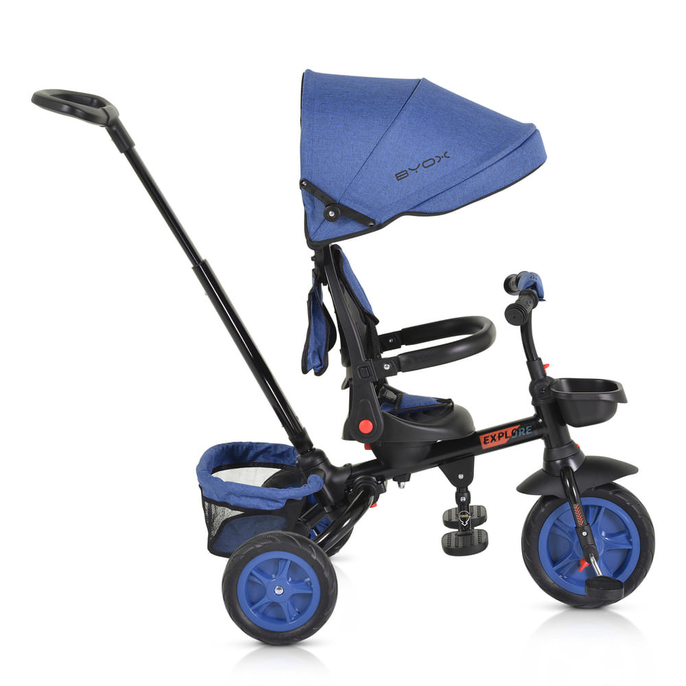 A Byox Explore triciklije 12-60 hónapos gyermekek számára készült, maximum 25 kg-os súlyig. Az Explore alkalmazkodik a gyermek életkorához és képességeihez, különböző használati módokat kínálva, amelyek lehetővé teszik a zökkenőmentes átmenetet a szülői felügyeletről az önálló kerékpározásra.
