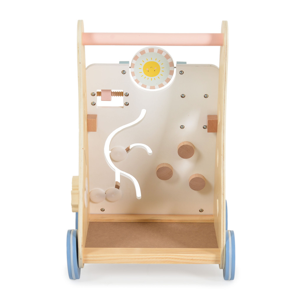 A járóváz egyik oldalán egy szortírozó is található három színes formával, amelyeket a megfelelő helyre kell helyezni a formának megfelelően.