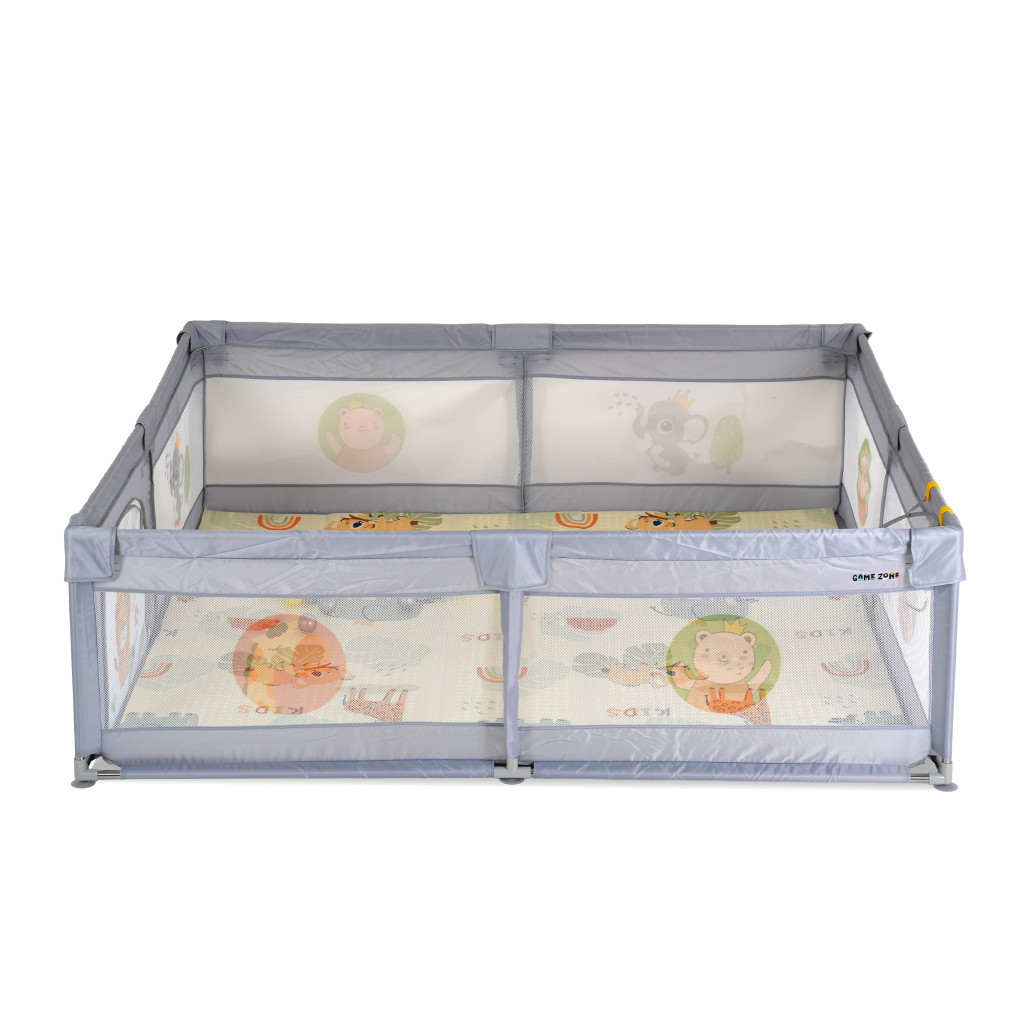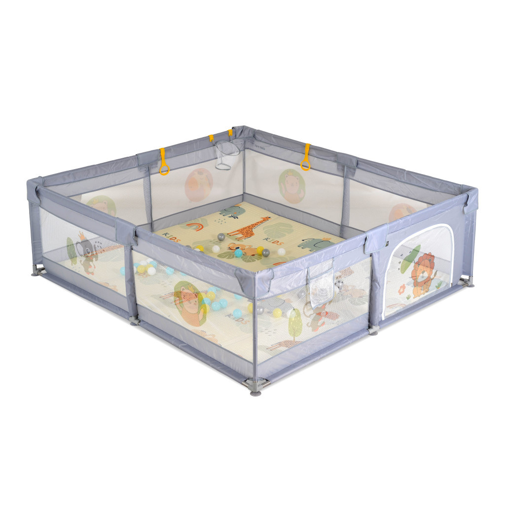 GAMEZONE  járóka összecsukható szőnyeggel, 60 labdával 180x200 SZÜRKE