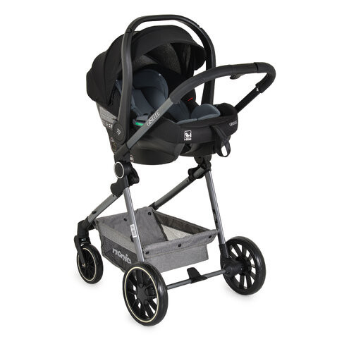 Ez az autós hordozó kifejezetten a GISELLE babakocsihoz csatlakoztatható, vagy önmagában az autóban bekötve rögzíthető.