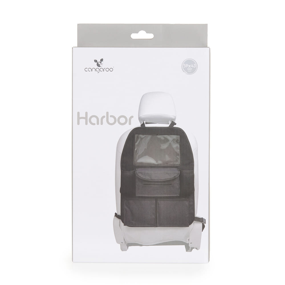 HARBOR rendező autósülés háttámlára A Cangaroo sokoldalú Harbor ülésszervezője ideális segítője a rendezett és kellemes utazásnak a gyermekkel. Az átlátszó érintőképernyővel ellátott (legfeljebb 12,2 hüvelykes) tablet/iPad számára külön helyet biztosít, így minden utazás szórakoztató kalanddá válik.