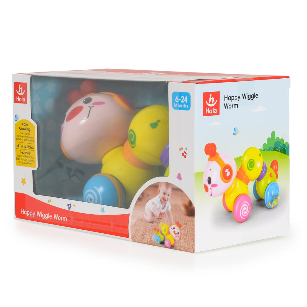 HOLA bébijáték vidám mozgó kukacka kerekekkel, műanyag