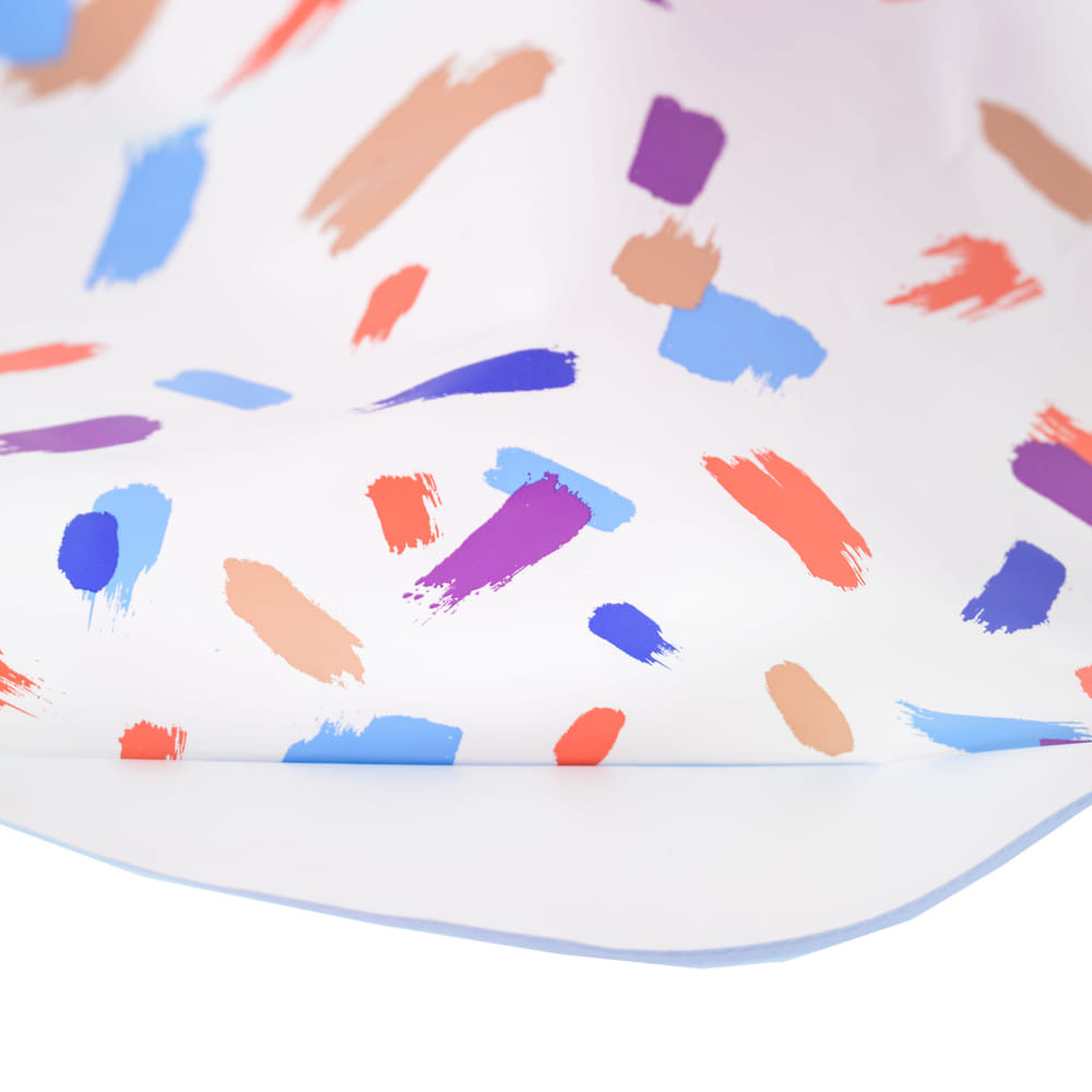 Alkalmas 6 hónaposnál idősebb gyermekek számára, könnyen tisztítható és megbízható védelmet nyújt a kiömlött folyadékok és foltok ellen - tökéletes segítő minden étkezéshez.