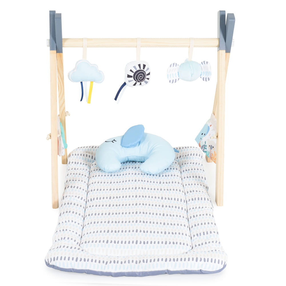 JÁTSZÓSZŐNYEG plüss, fa játékhíddal, összecsukható Sahara SZÖGLETES