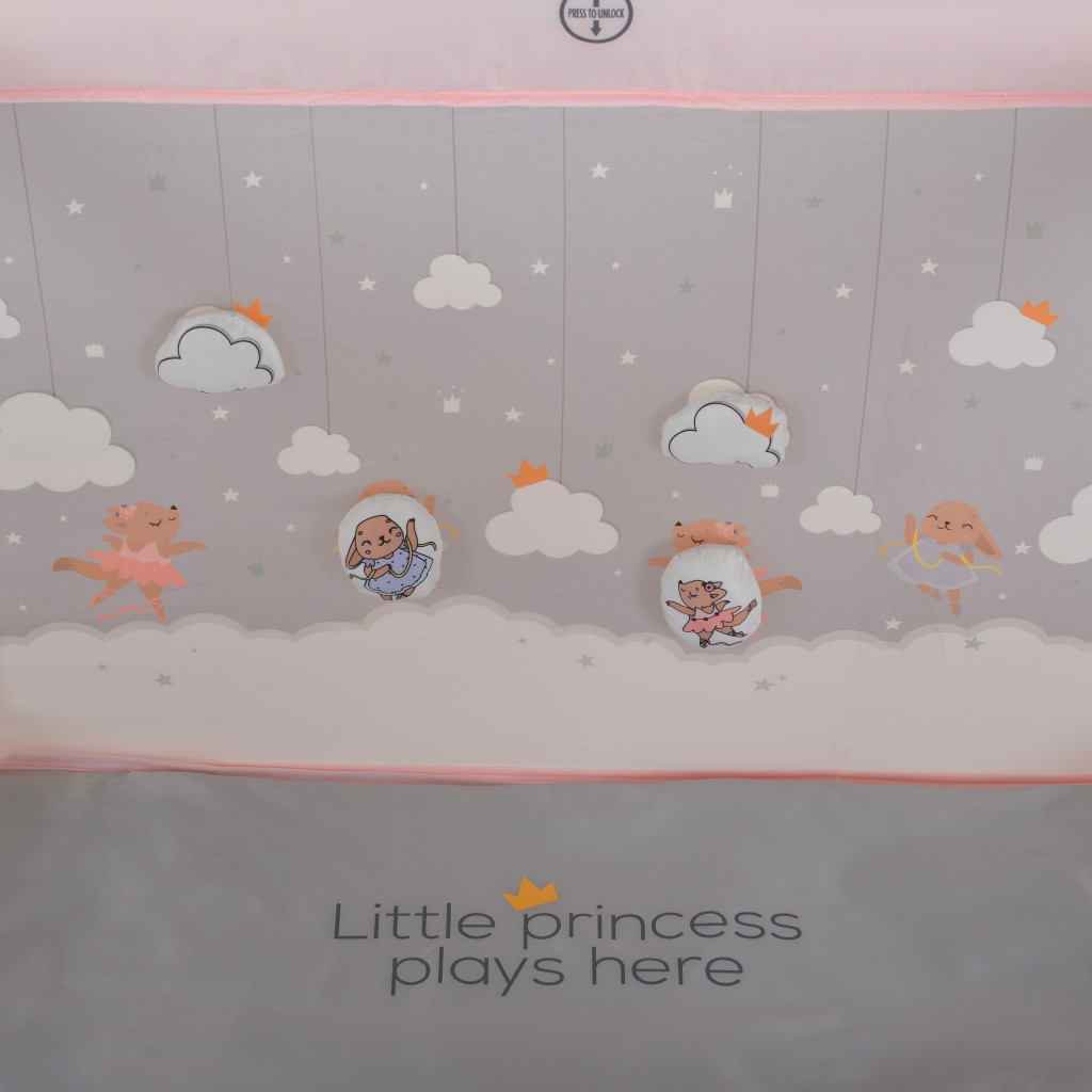 JOYZI összecsukható utazójáróka illeszkedik minden otthonhoz rózsaszín mintás. Az összecsukható funkciója miatt különösen praktikus, hiszen könnyedén tárolható és szállítható. A járóka négyzet alakú, biztonságos és kényelmes játszóteret biztosít a kicsik számára, 6 támasztólábbal, kicippzárazható oldalfallal. A kicsik vidáman kibújhatnak a járókából. Tökéletes választás, ha szükséged van egy biztonságos és kompakt helyre, ahol a gyermek játszhat, miközben te a háztartási feladatokat végzed. Használat után a saját táskájába téve könnyen tárolható. Az utazótáska tartozék. Az utazójáróka praktikus és kényelmes megoldás az otthoni vagy utazás közbeni biztonságos játékhoz. Szilárd szerkezete biztonságot és kényelmet biztosít gyermekének, így Ön is nyugodt lehet. A modell hálós oldalakkal rendelkezik, amelyek kiváló szellőzést és folyamatos láthatóságot biztosítanak a kisgyermek számára. A cipzáras oldalsó bejárat könnyű hozzáférést és nagyobb függetlenséget biztosít a kisgyermekek számára. A mellékelt tépőzáras játékok stimulálják a képzelőerőt és a finom motorikus képességeket, így a játék még élvezetesebbé válik. A járóka 1 cm vastag matraccal van felszerelve, amely további kényelmet biztosít játék közben. Összecsukva könnyű és kompakt, kényelmes hordtáskával rendelkezik – tökéletes utazáshoz és látogatásokhoz.