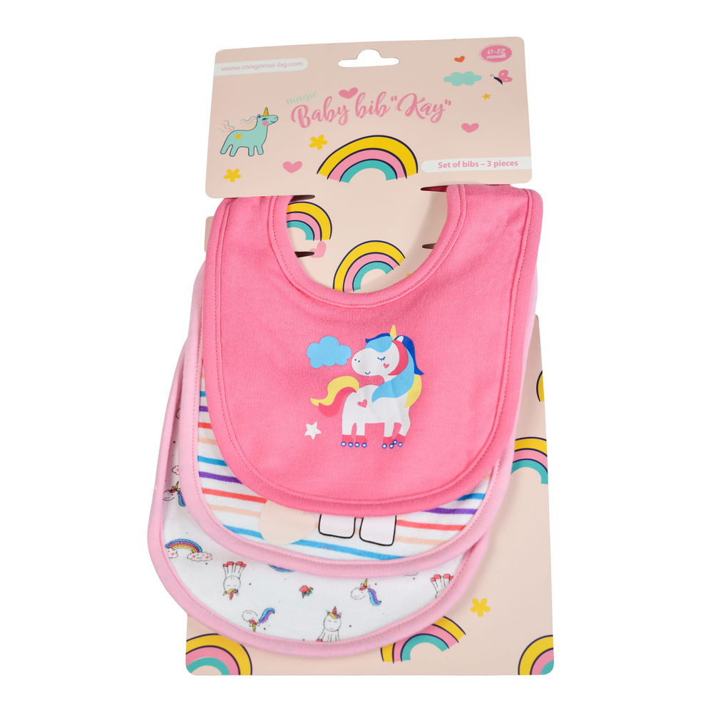 KAY előke pamut újszülött méret, 3 dbos csomag, 3 vidám színben 60% pamut 40% polyester, könnyen mosható, mosógépben is. LÁNY színek