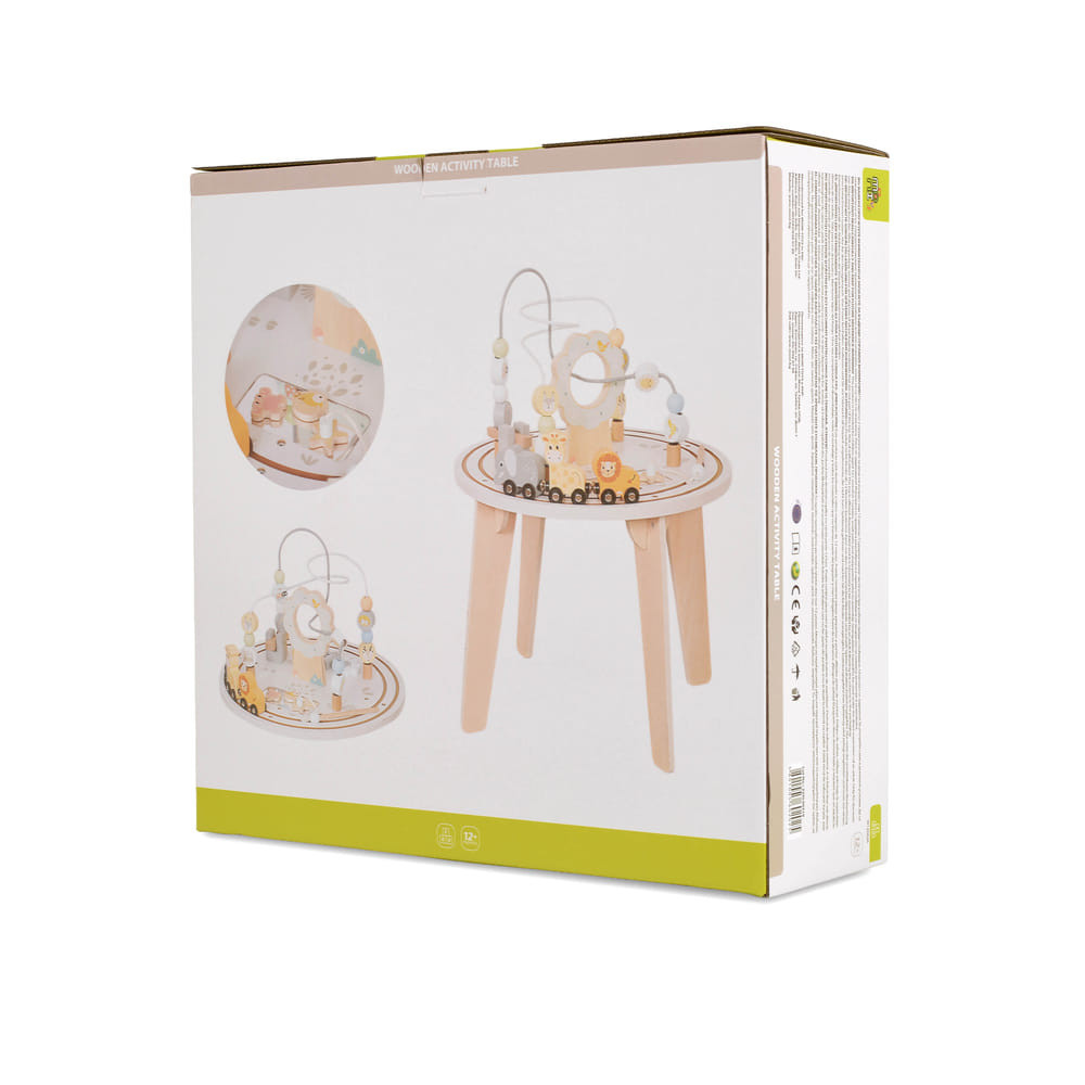 Ébressze fel gyermeke kíváncsiságát és fejlessze képességeit ezzel a több játékterülettel rendelkező Moni Toys fa játékasztallal! A játék tartalmaz egy sínekkel ellátott fa vonatot, amelyen állatok – elefánt, zsiráf és oroszlán – utaznak, valamint egy gyöngyös labirintust és különböző forgó elemeket, amelyek szórakoztatóvá és izgalmassá teszik a játékidőt. A készlet tartalma: • Fa vonat állatokkal • Gyöngyös labirintus • Forgó elemek a további játék és szórakozás érdekében Előnyök: • Fejleszti a finom motorikus képességeket és a kéz-szem koordinációt • Ösztönzi a logikus gondolkodást és a problémamegoldást • Biztonságos és kiváló minőségű anyagokból készült • 12 hónapos és annál idősebb gyermekek számára alkalmas Ez az asztal tökéletes módja annak, hogy ötvözze a szórakozást, a tanulást és a kisgyermekek számára elengedhetetlen képességek fejlesztését!