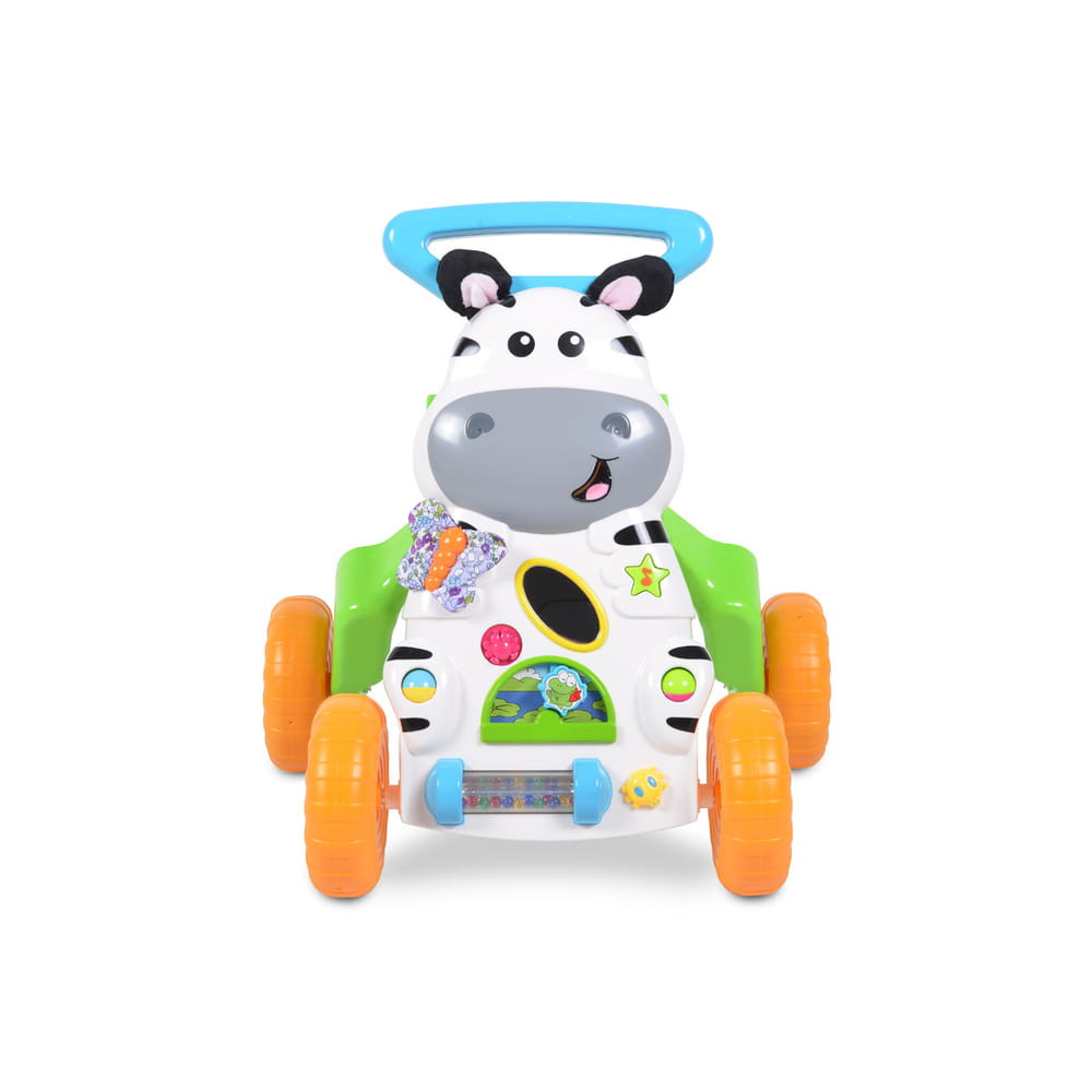 A Little Zebra zenélő járássegítő játék egy nagyszerű és nagyon funkcionális modell, amely változatos és érdekes tevékenységeket kínál a gyermek számára. A színes játéktábla és a zenélő panel, valamint a puha zebrafülek szórakoztatják a babát, miközben fejlesztik látását, hallását és kreatív gondolkodását. Az extra színes gombok, dallamok és különböző figurák még több pozitív érzelmet keltenek a kicsiben és szüleiben. Ugyanakkor serkentik a különböző színek és formák felismerésének képességének fejlődését. A tolófogantyú nagyon kényelmes, és a gyermek magasságának megfelelően állítható. A járókeret nagyon könnyen összecsukható, így bárhová magával viheti. 2 x 1,5 V-os AA elemmel működik, és 12 hónaposnál idősebb gyermekek számára alkalmas. Az egyik legfontosabb pillanat a baba életében az, amikor megpróbálja megtenni az első lépéseit. Az első lépések időszaka rendkívül fontos a baba fejlődése szempontjából, ezért olyan járókát/járássegítőt kell választani, amely segít neki bátran és önállóan járni, miközben sok örömet nyújt neki.