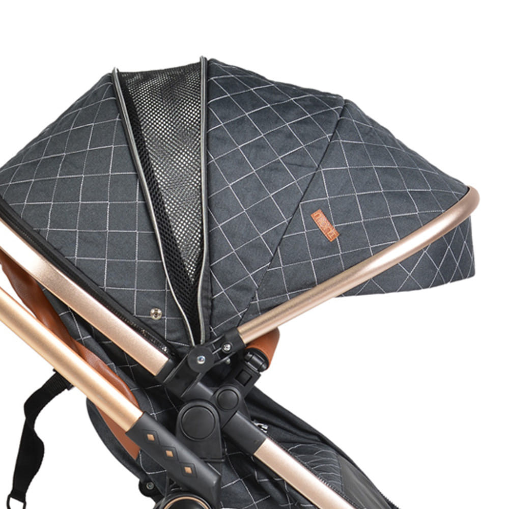Az Alma babakocsi fekete színben kifinomult és modern megjelenést kölcsönöz, ami minden szülő és bébiszitter számára tökéletes választás.