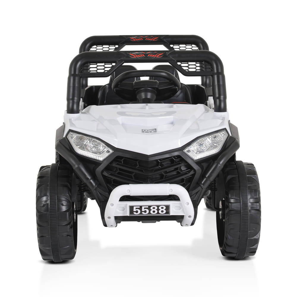 Két motor; Műanyag kerekek; Első, hátsó és felső lámpák; BE / KI kapcsoló; Zenelejátszó USB, MP3, zenei funkciókkal;
