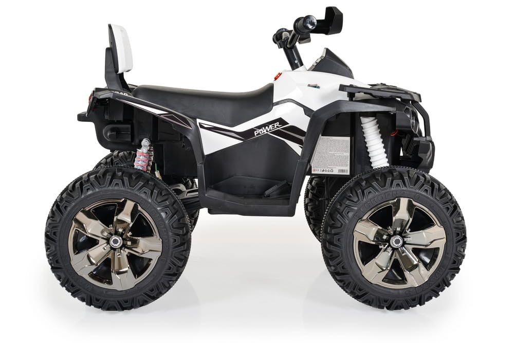 Főbb jellemzői közé tartozik a magas minőségű anyagokból készült erős és strapabíró felépítés, amely biztosítja a jármű hosszú távú használatát. A négy nagy, robusztus kerék garantálja a jármű stabilitását, még a durvább terepen is, így a gyerekek biztonságosan élvezhetik a vezetést.