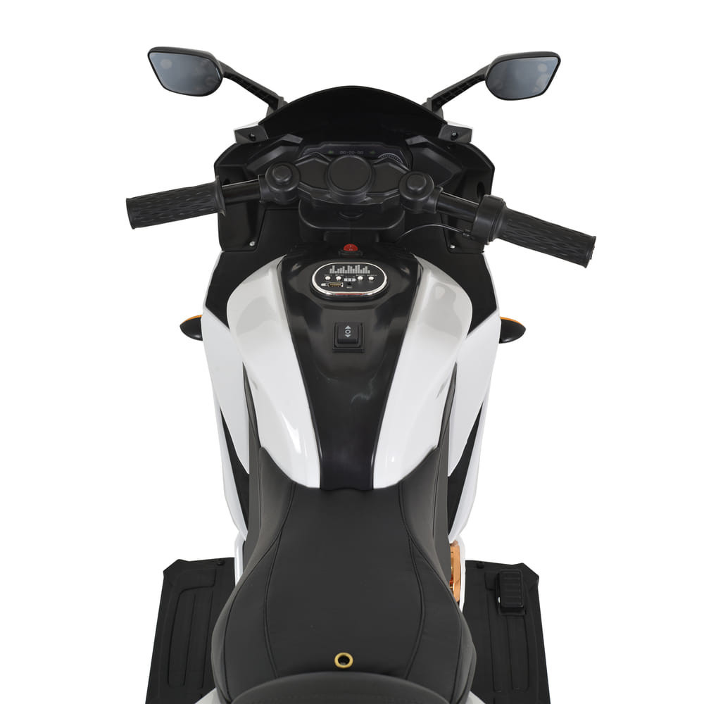 3-8 éves gyermekeknek, akiknek a maximális súlya 30 kg; Akkumulátor - 12V7Ah; Egy motor; Első lámpák, hátsó lámpák; Zenelejátszó MP3 funkcióval és Bluetooh-val; Mozgás a kormány markolatával;