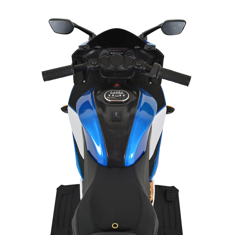 3-8 éves gyermekeknek, akiknek a maximális súlya 30 kg; Akkumulátor - 12V7Ah; Egy motor; Első lámpák, hátsó lámpák; Zenelejátszó MP3 funkcióval és Bluetooh-val; Mozgás a kormány markolatával.