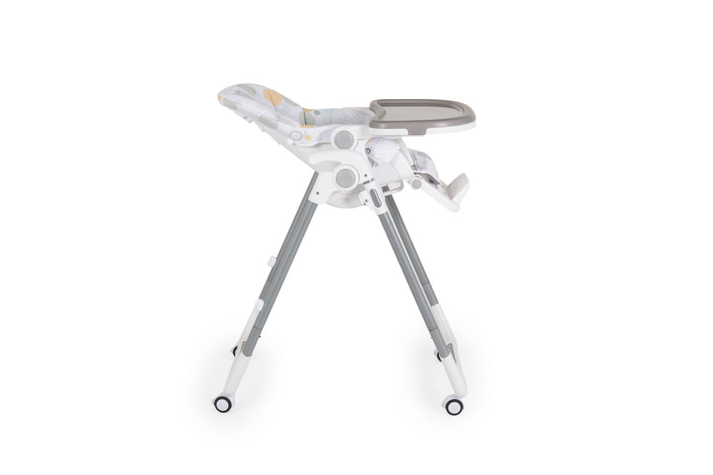 Bueno multifunkcionális etetőszék: 6 magassági szinttel, 5 háttámla pozícióval, 3 lábtámasz dőlésszöggel, 3 kétrétegű adagolótálcával, 5 pontos biztonsági rendszerrel rendelkezik, állítható övekkel.