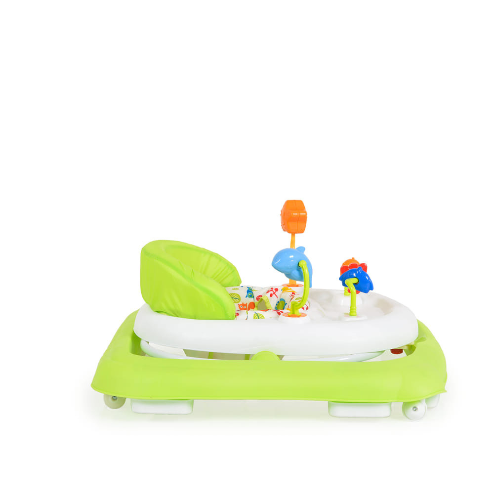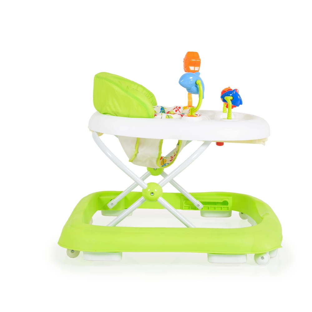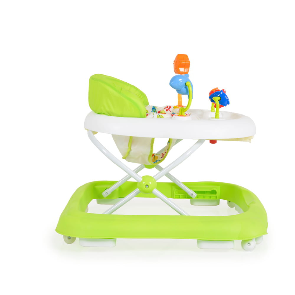 A zöld színű járássegítő 3 pozícióban állítható magassággal rendelkezik,