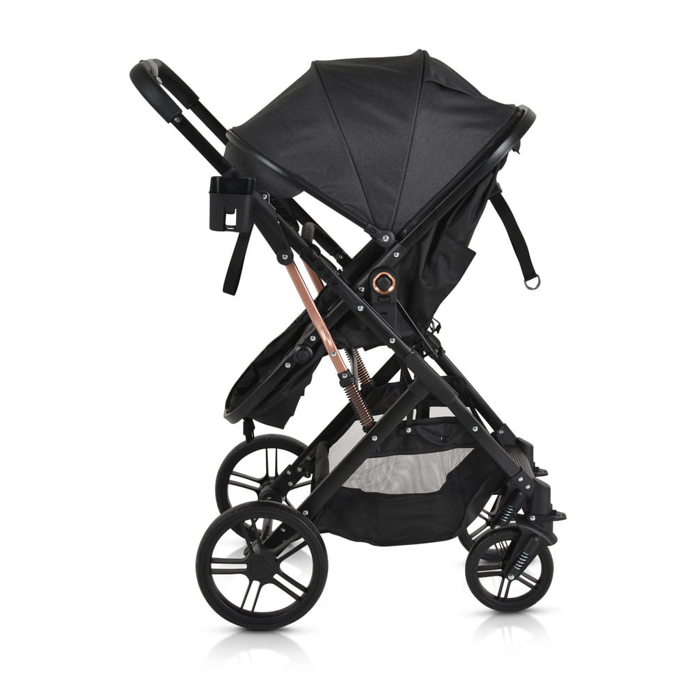 Fém váz.Megfordítható ülés.Levehető karfa.Egy kézzel összecsukható rendszer.Ötpontos heveder.Forgó első kerék irányrögzítéssel.2*7“+2*10“EVA kerekek.R129 Autóülés illeszthető