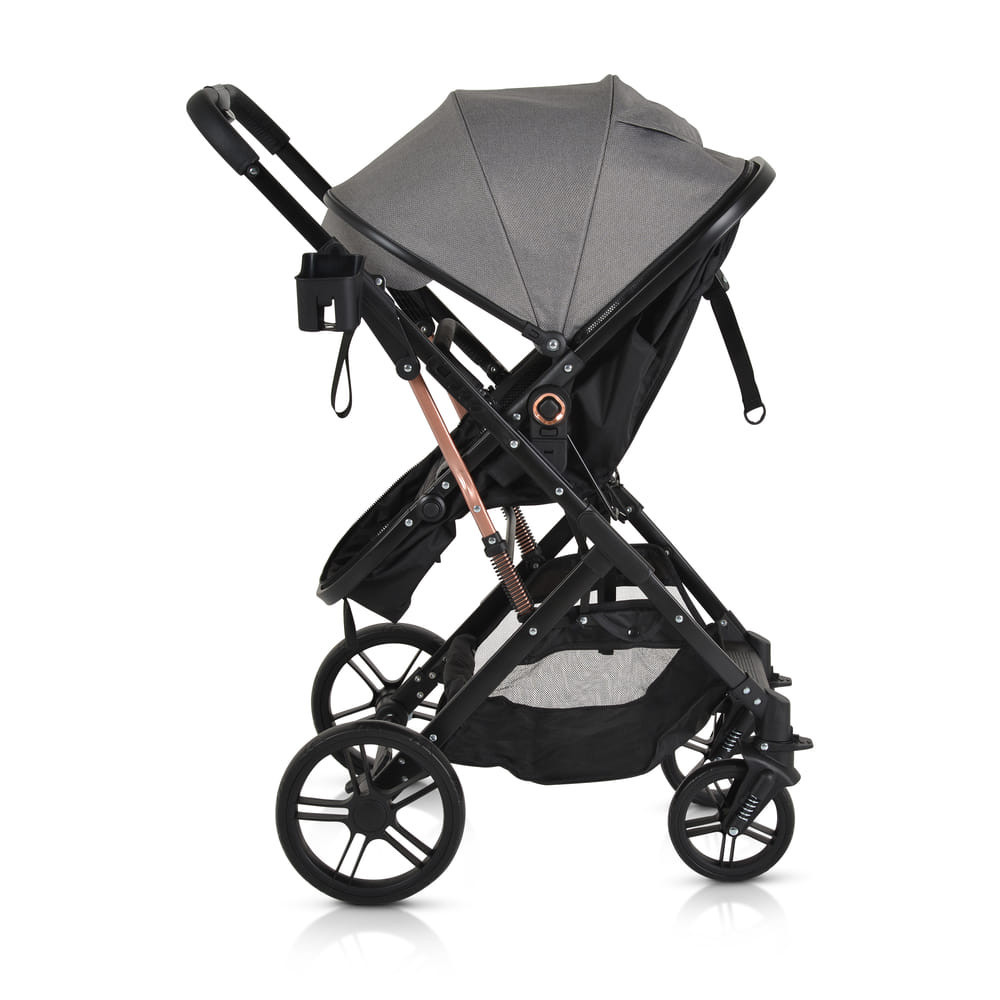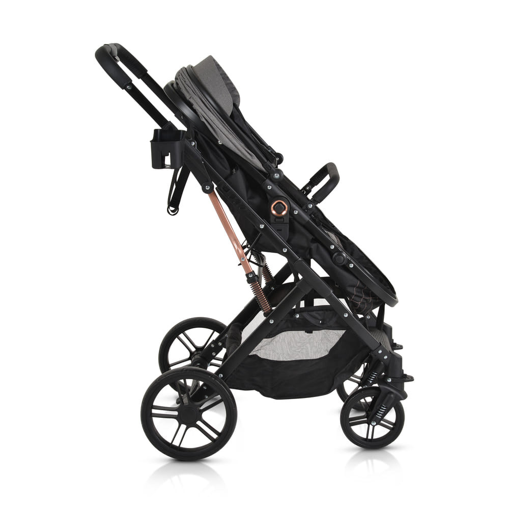 Fém váz.Megfordítható ülés.Levehető karfa.Egy kézzel összecsukható rendszer.Ötpontos heveder.Forgó első kerék irányrögzítéssel.2*7“+2*10“EVA kerekek.R129 Autóülés illeszthető