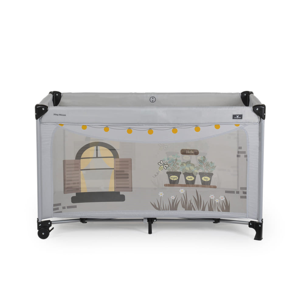 A Play House utazóágy ötvözi a kényelmet és a funkcionalitást, alkalmas alvásra és játékra egyaránt. 2 magassági szinttel rendelkezik, mind a négy oldalán légáteresztő hálóval és tetővel rendelkezik az optimális légáramlás és a könnyű szülői felügyelet érdekében. A tető és az oldalsó bejárat cipzárral van felszerelve a gyors hozzáférés érdekében. A kiságy 2 ütközőkkel ellátott kerékkel rendelkezik a mobilitás és a stabilitás érdekében, 1 cm-es matraccal és praktikus hordtáskával – így kényelmes otthoni vagy utazás közbeni használatra.