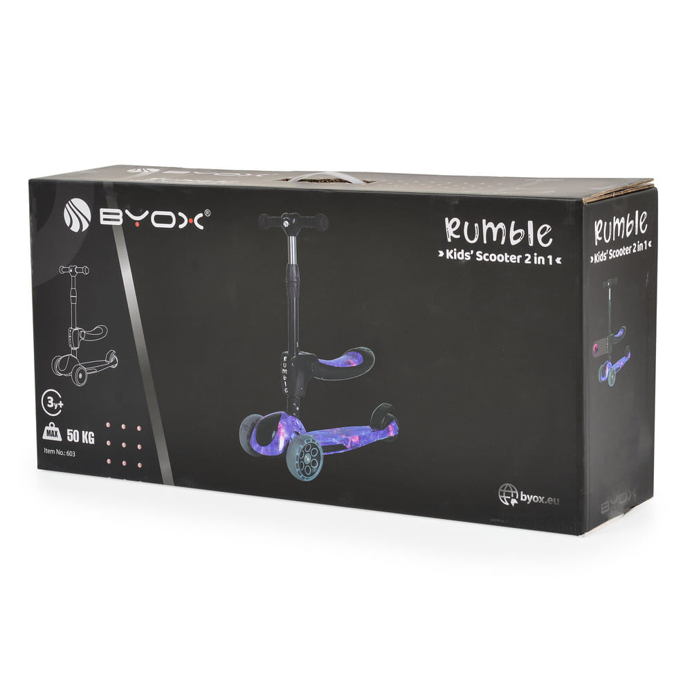 A Rumble átalakítható roller, egyesíti a biztonságot, a kényelmet és a szórakozást egyben. A 3 évesnél idősebb gyermekek számára tervezett modell stabilitást, alkalmazkodóképességet és számos olyan funkciót kínál, amelyekkel minden utazás igazi élménnyé válik.