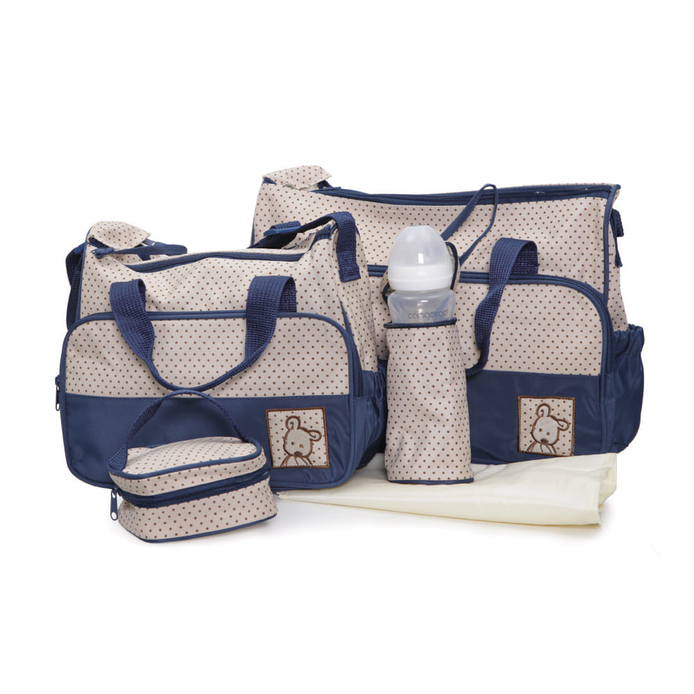 Stella táska szett kiegészítőkkel 5 részből álló szett tartalma: - Nagy táska - 39 x 29 x 15 cm; két rövid fogantyú; egy hosszú, kihúzható fogantyú; cipzáras főrekesz belső cipzáras zsebbel; elülső külső cipzáras zseb; oldalsó palackzseb. - Táska - 30 x 25 x 13 cm; két rövid fogantyú; egy hosszú, meghosszabbítható fogantyú; cipzáras főrekesz belső cipzáras zsebbel; elülső külső cipzáras zseb; oldalsó palackzsebek; -Kis táska kompakt fogantyúval kisebb tárgyak számára; -Termo cumisüveg tartó - 19 x 8 cm; - Összecsukható pelenkázó alátét; A könnyen tisztítható anyagból készültek. Nedves ruhával takaríthatóak.