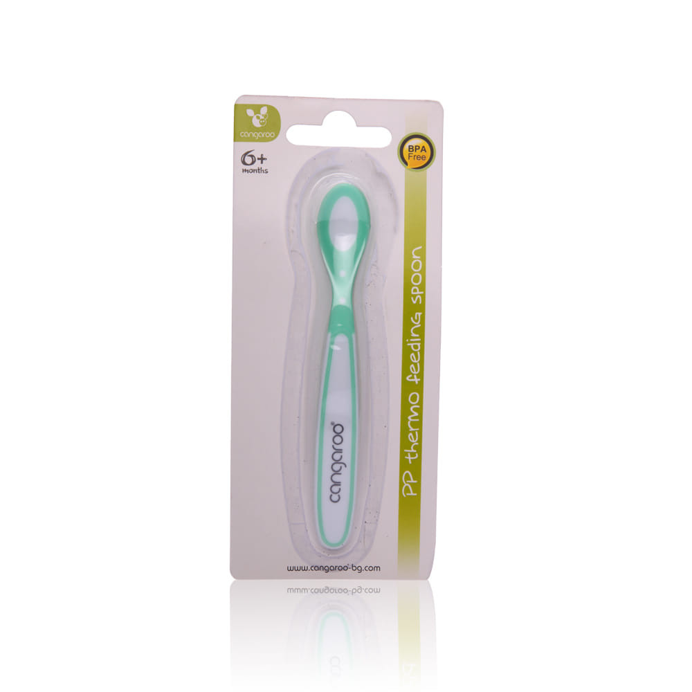 Bliszteres csomagolás. A termék 6 hónaposnál idősebb gyermekek számára készült. Ne használja a kanalat az engedélyezett életkor alatti gyermekek számára. A PP termoszkanál megváltoztatja a színét, ha az étel túl forró a gyermek számára. A termék segít megkönnyíteni az átmenetet a csak tejes táplálkozás és a szilárd ételekkel való táplálkozás között.Tartalom: PP, TPE. BPA-mentes