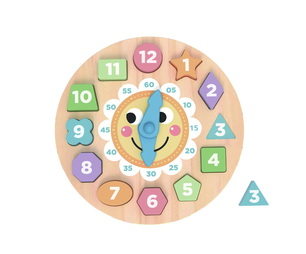 TOOKY Fajáték óra PUZZLE TL675N Fából készült oktatási óra, válogató formájában. Ezzel az órával a gyerekek nagyon egyszerűen megtanulhatják az időt. A nagy számrendezővel pedig a kisebb gyerekek szórakoztató módon tanulhatják meg a számokat és a számolást. Megtanulhatják a formákat és a színeket. a játékórának sok oktatási funkciója van.