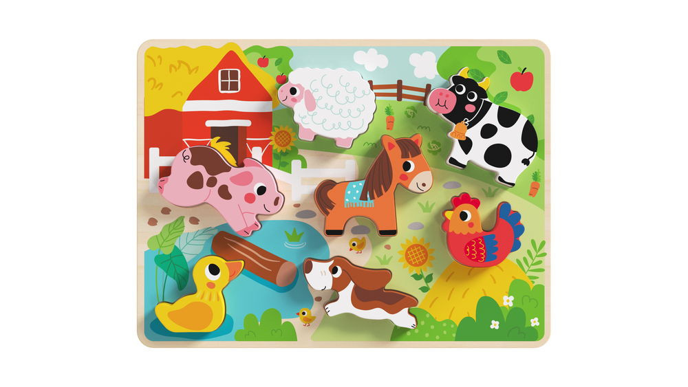 TOOKY Toy fapuzzle kirakó, forma illesztős, farmos 8dbos