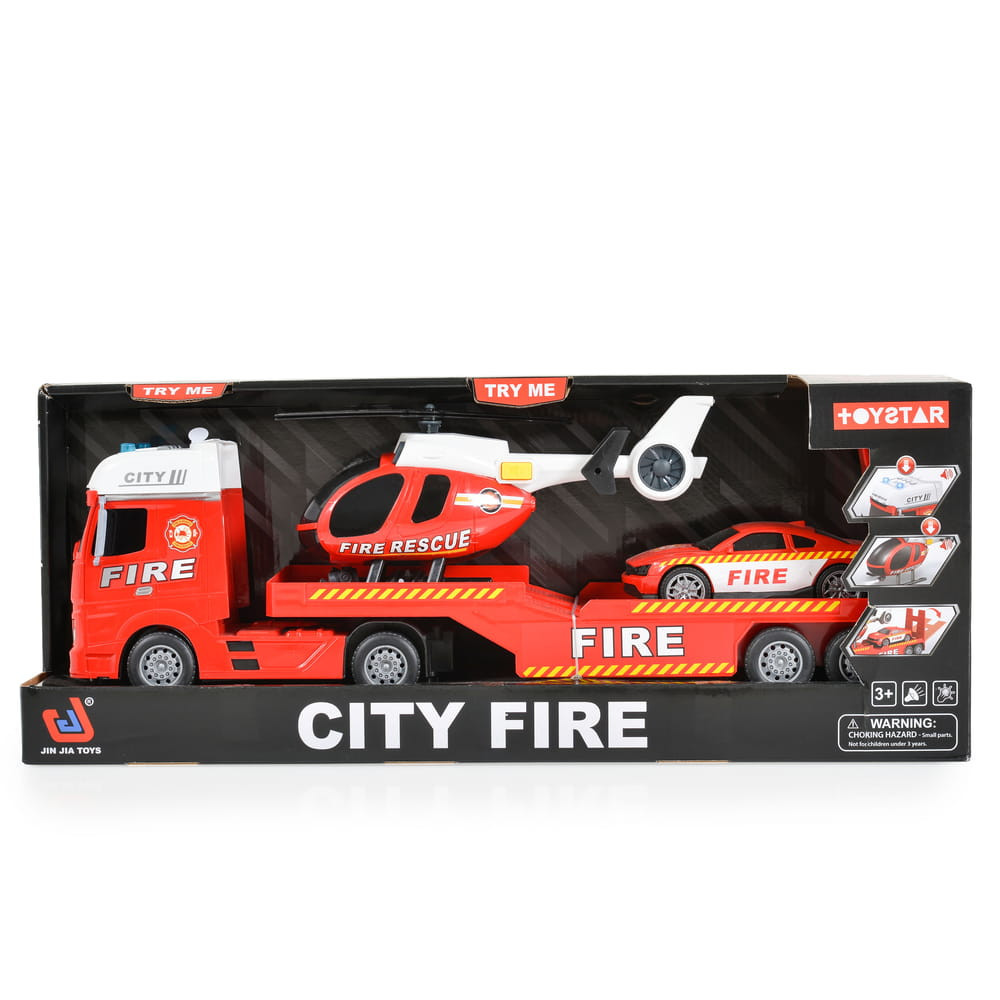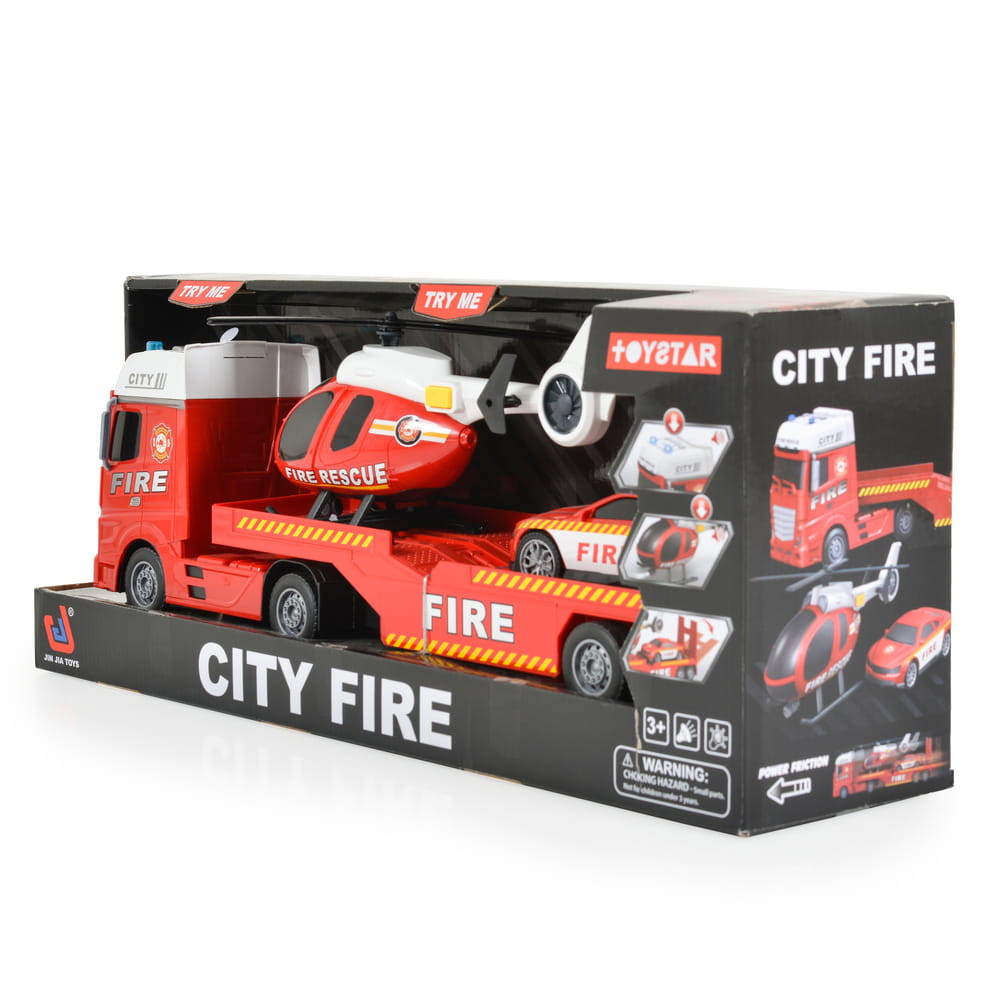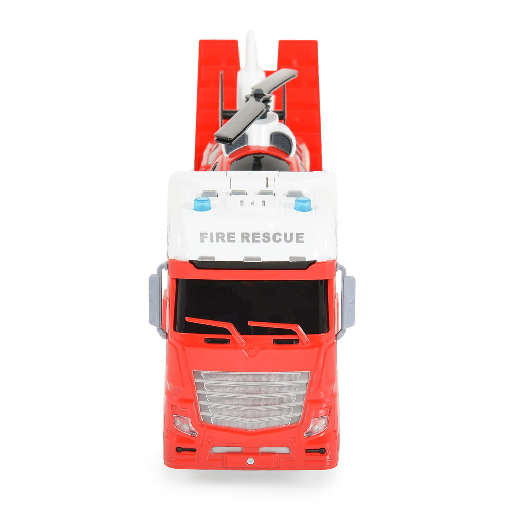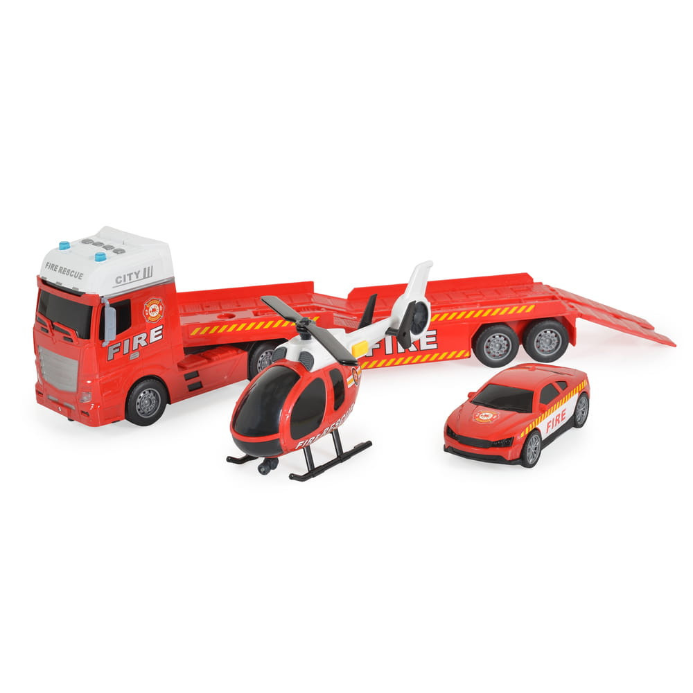 Tűzoltó vontató autó helikopterrel, autóval 54cm PIROS