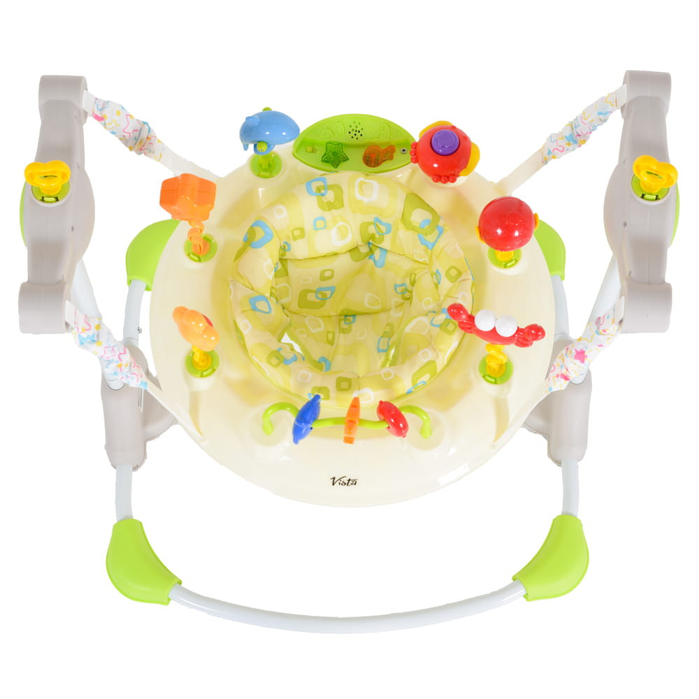 A Vistát úgy tervezték, hogy gyermeke biztonságosan ugrálhasson a lábát használva, miközben a textilszőnyegen szórakozik. A gyengéd fel-le mozgás
