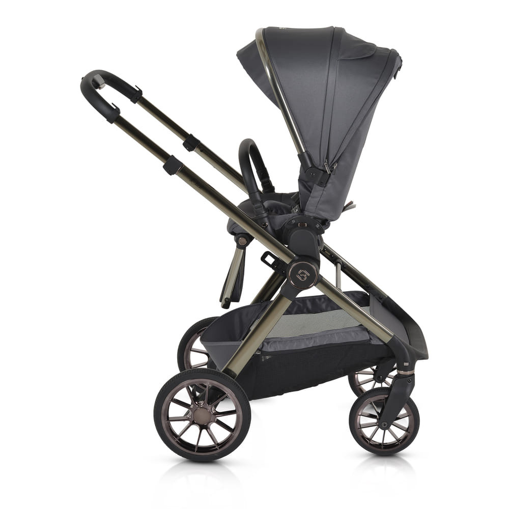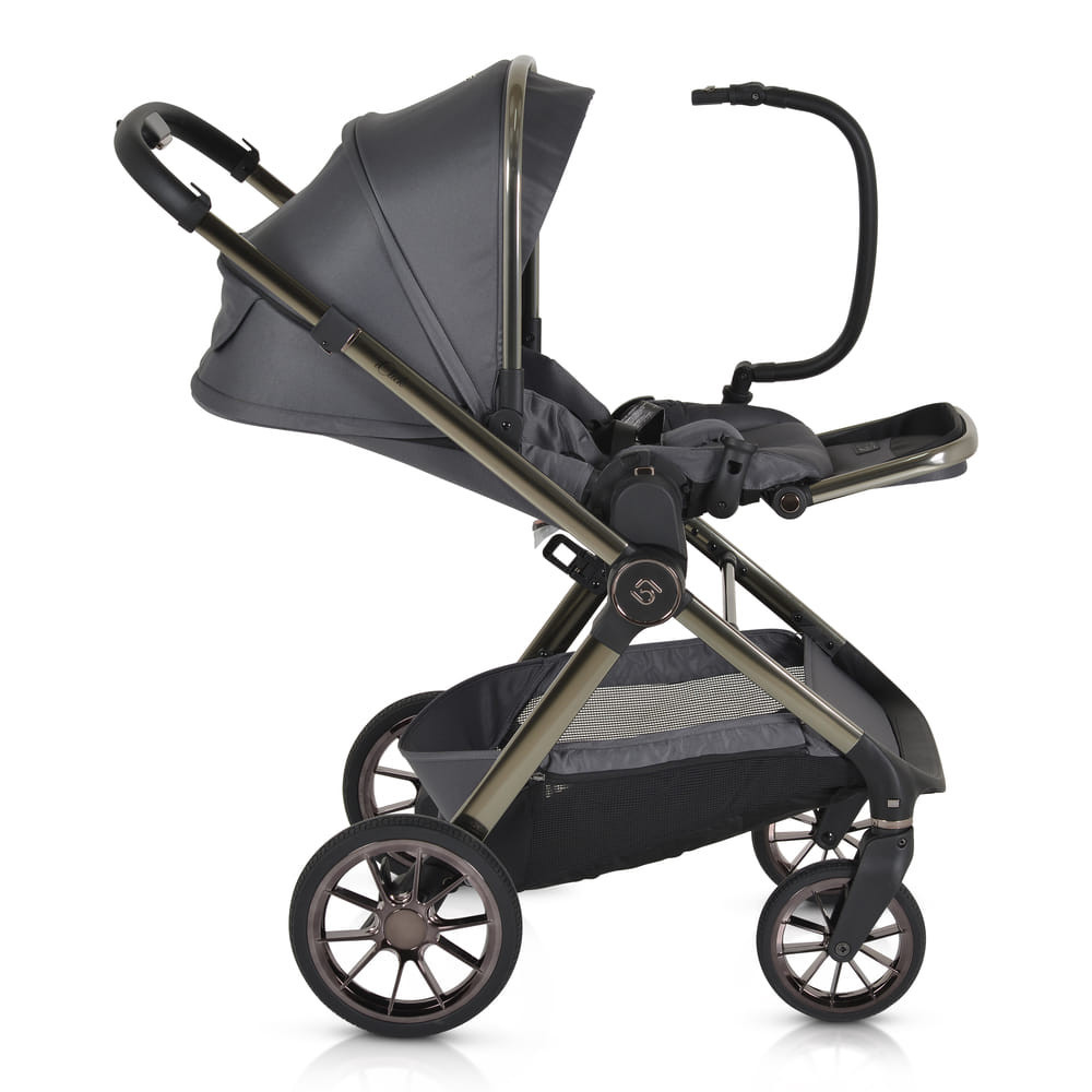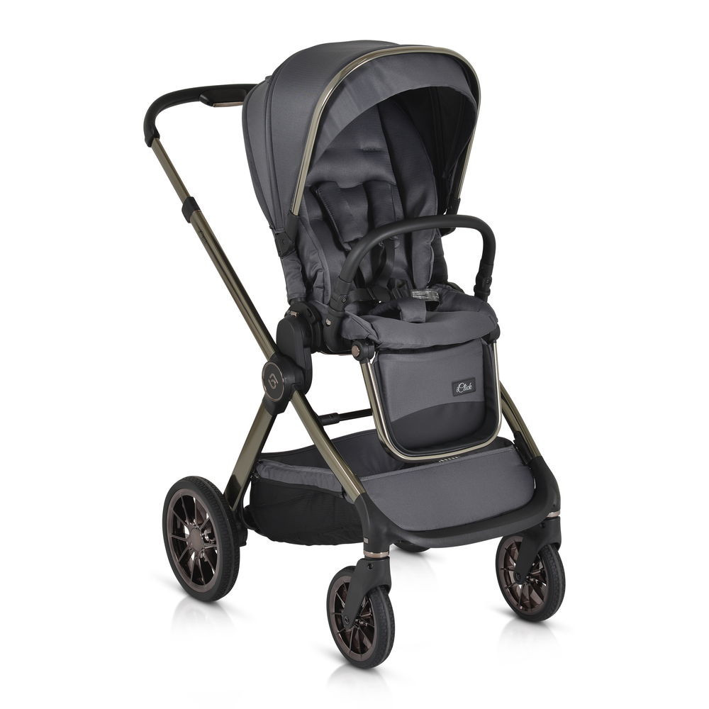iCLICK Babakocsi 2in1 szett 22kg-ig terhelhető, aluminium, színben passzoló váz, fordítható ülés, automatán csukható. Ehhez a babakocsi szetthez tartozik a vázra adapterrel illeszthető mózeskosár jó minőségű matraccal és egy sportrész, amely a vázzal együtt mindkét irányban laposra, kicsire összecsukható. Az autós hordozó nem a szett része, külön vásárolható meg. A Macan/Icon I-SIZE típusú autós hordozóval kompatibilis.