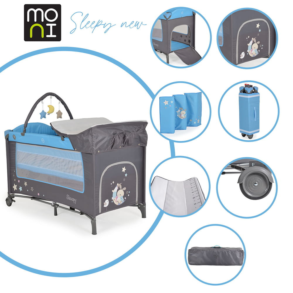 MONI Sleepy összecsukható luxus utazóágy 2 szint+pelenkázó+ játék kék