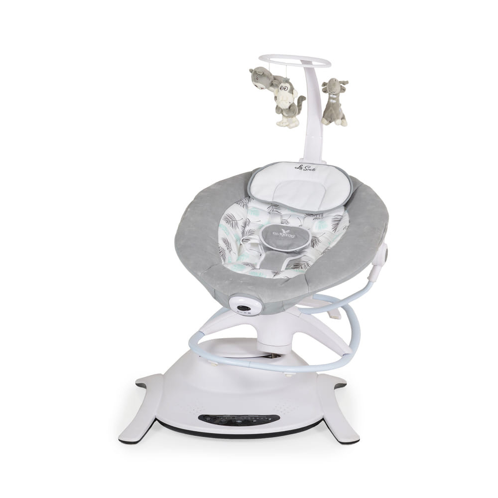 A hintát úgy alkották meg, hogy a szülő természetes ringatását utánozza, 6 egyedi mozgással. Természetes ringató, emelgető, finom mozdulatokat építettük be a pihenőszékbe, hogy ezáltal az jobban nyugtassa és szórakoztassa a piciket. A pihenőszék kialakítása hasonló az anyaméhhez. Lágyan körülöleli a csecsemőt, így biztosítva neki nyugalmat. Az ülés dőlésszöge 3 különböző pozícióba állítható attól függően, hogy a baba pihenni akar vagy a puha állatkákkal mókázni. A kiegészítő párna babád maximális kényelmét, az 5 pontos biztonsági öv pedig biztonságát szolgálja. Mozgásérzékelővel van ellátva, így a baba mozgására a hinta automatikusan bekapcsol.