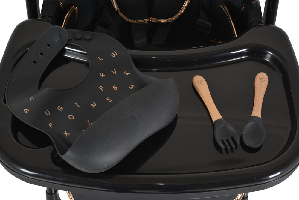 LINDO multifunkciós etetőszék kiegészítőkkel (előke, kanál, villa) FEKETE